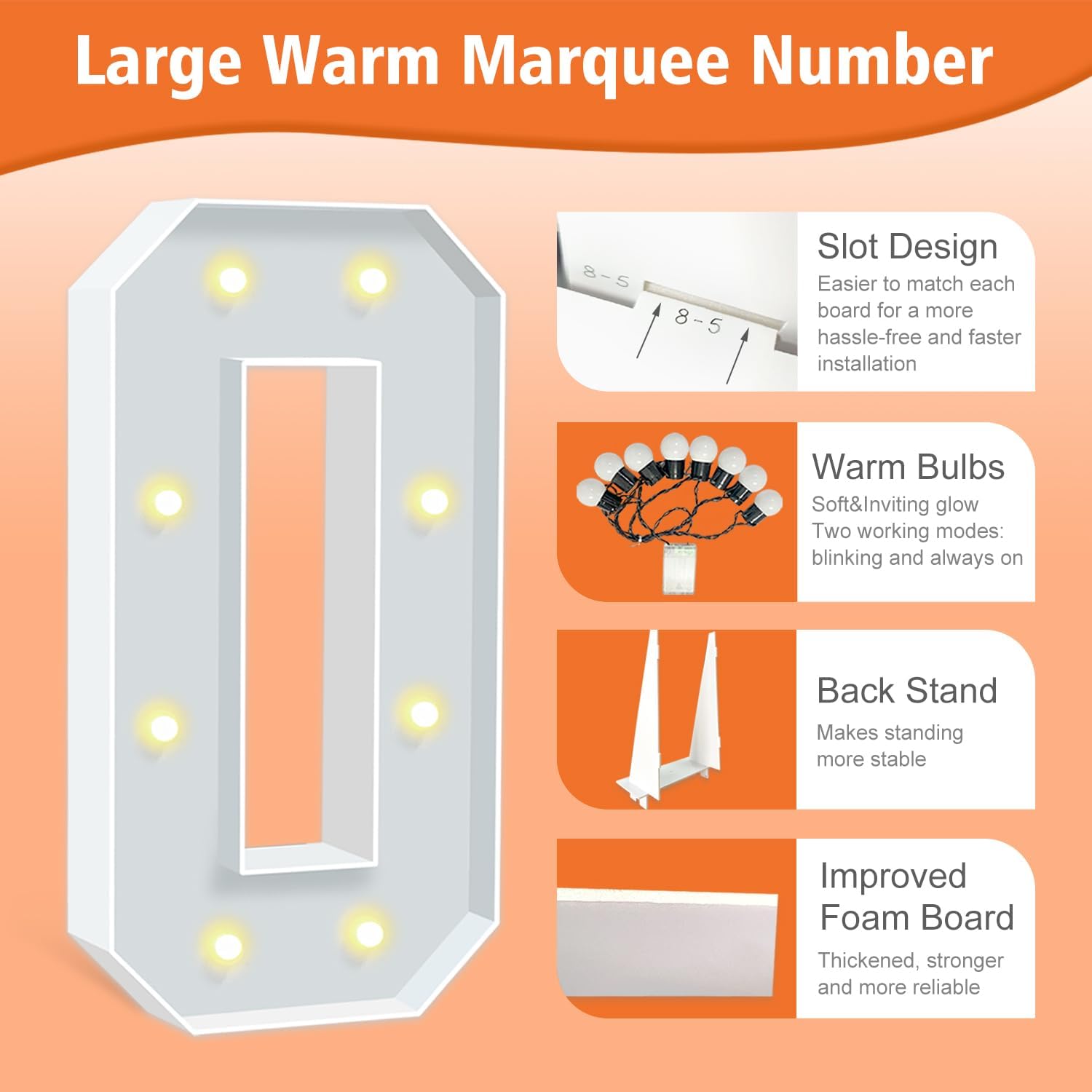 3FT Marquee Light Up Letters, Warm White Light Up Letters O, Large Marquee Letter for Party Decorations, Mosaic Light Up Signs, One Sign for First Birthday Wedding Holiday Decor