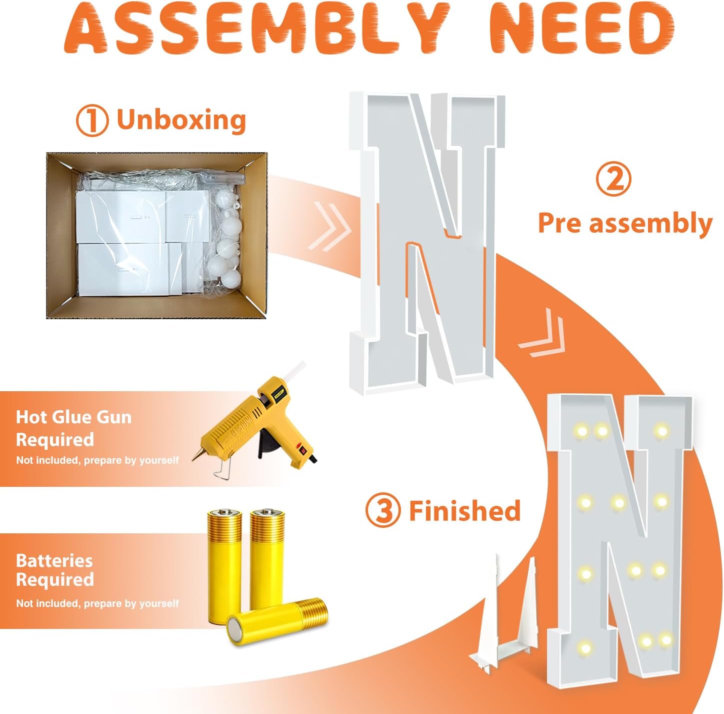 4FT Marquee Letter N, Block Marquee Light Up Letters for Birthday Baby Shower Party Backdrop Decor, Large Light Up Letters for Indoor & Outdoor Wedding Engagement Party Decorations