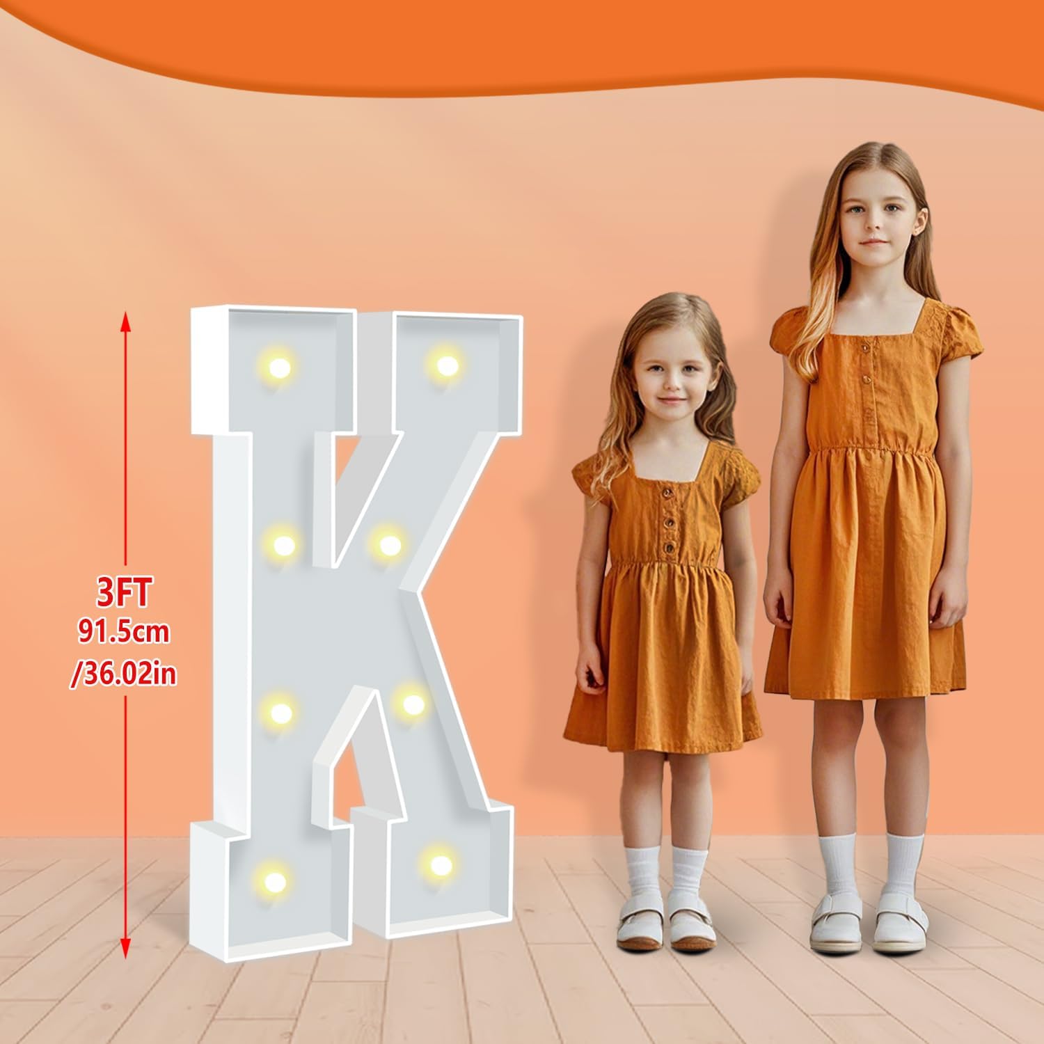 3FT Marquee Letters K, Party Decoration Large Marquee Light Up Letters, Pre-cut Foam Board Letter Set for Birthdays Baby Shower Wedding Event Bridal Shower Engagement Anniversarty Party Decor