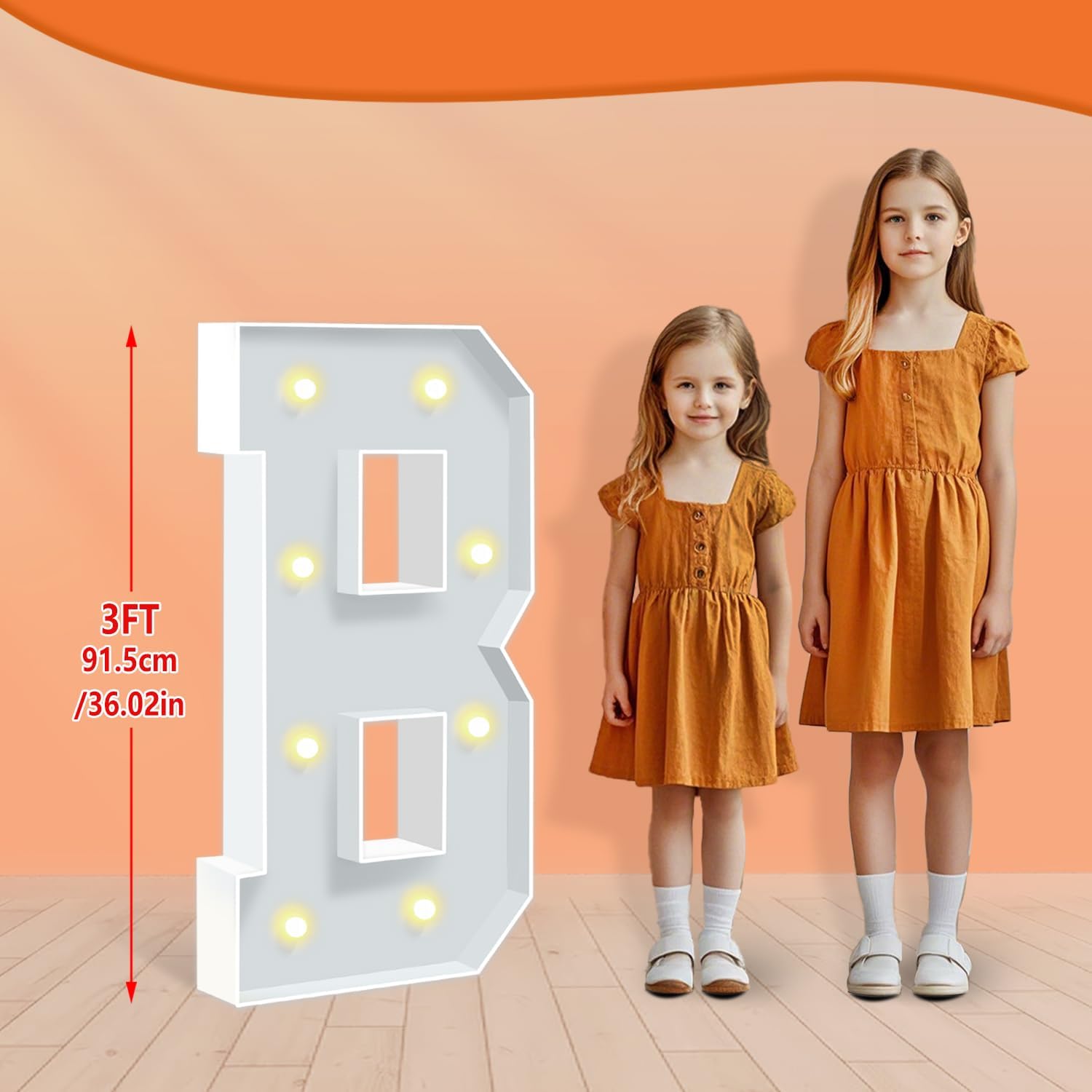 • BRIGHT & SAFE LIGHTING: The light up letters are powered by 3 AA batteries(not included), ensuring the safety of all your guests. There's a switch on the battery compartment, you can switch the Warm Yellow led light from steady to cheerful flashing, ideal for creating a cozy, inviting ambiance to any celebration or event.
