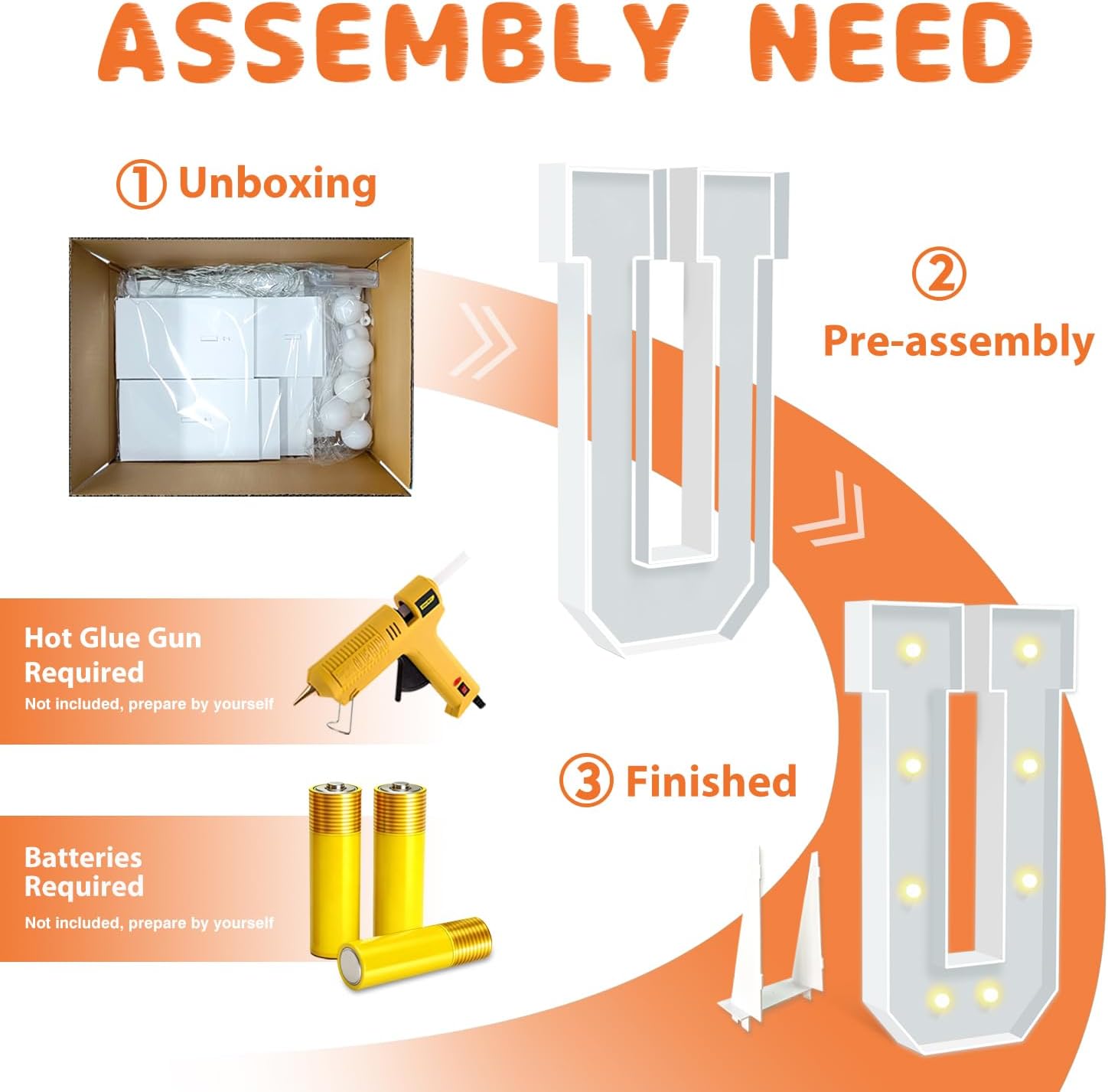• EASY TO ASSEMBLE: The package includes pre-cut foam boards, light strings and instructions. Each foam board has slots and is numbered, so you can match them according to the 2 same numbers. All you need to do is to prepare a hot glue gun and 3 AA batteries, follow the step-by-step instructions or online video for a hassle-free assembly. Decorate the party with your kids or friends and enjoy the DIY fun. (Note: Glue gun, glue and batteries are not included)