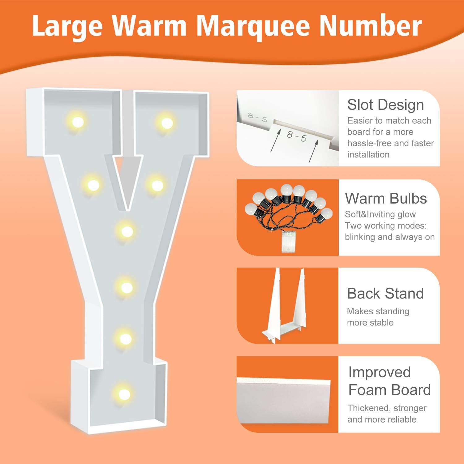 Marquee Letters 3 Feet Tall, Warm White Light Up Letters Y, Large Marquee Letter for Birthday Anniversary Graduation Party Decoration, DIY Letter Kit for Baby Shower Valentines Decor