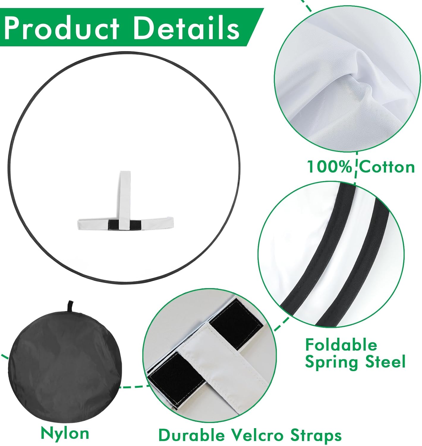 • 🟢【Quick and Easy Foldable Steel】The outer ring of the steel spring opens to open the installation and save time and hassle. The portable green screen with stand can be folded to a diameter of 19 IN. Be careful when disassembling or folding! If you don't control it, the foldable steel frame will quickly disappear in seconds. Hold the frame and slowly unfold it with control.