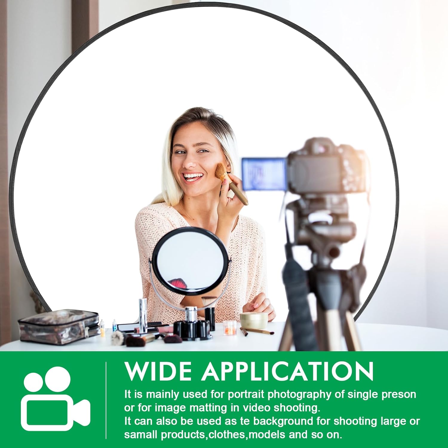 • 🟢【Portable and Collapsible Chair Green Screen】This portable backdrop measures 145cm/57inch diameter when unfolded. When you're done using the screen, you can easily fold it down to a diameter of only 50cm/19inch in just 5 steps. Ready to store in the included carrying bag. The foldable design ensures the green screen is free of wrinkles, dust or defects, making chroma keying a breeze.