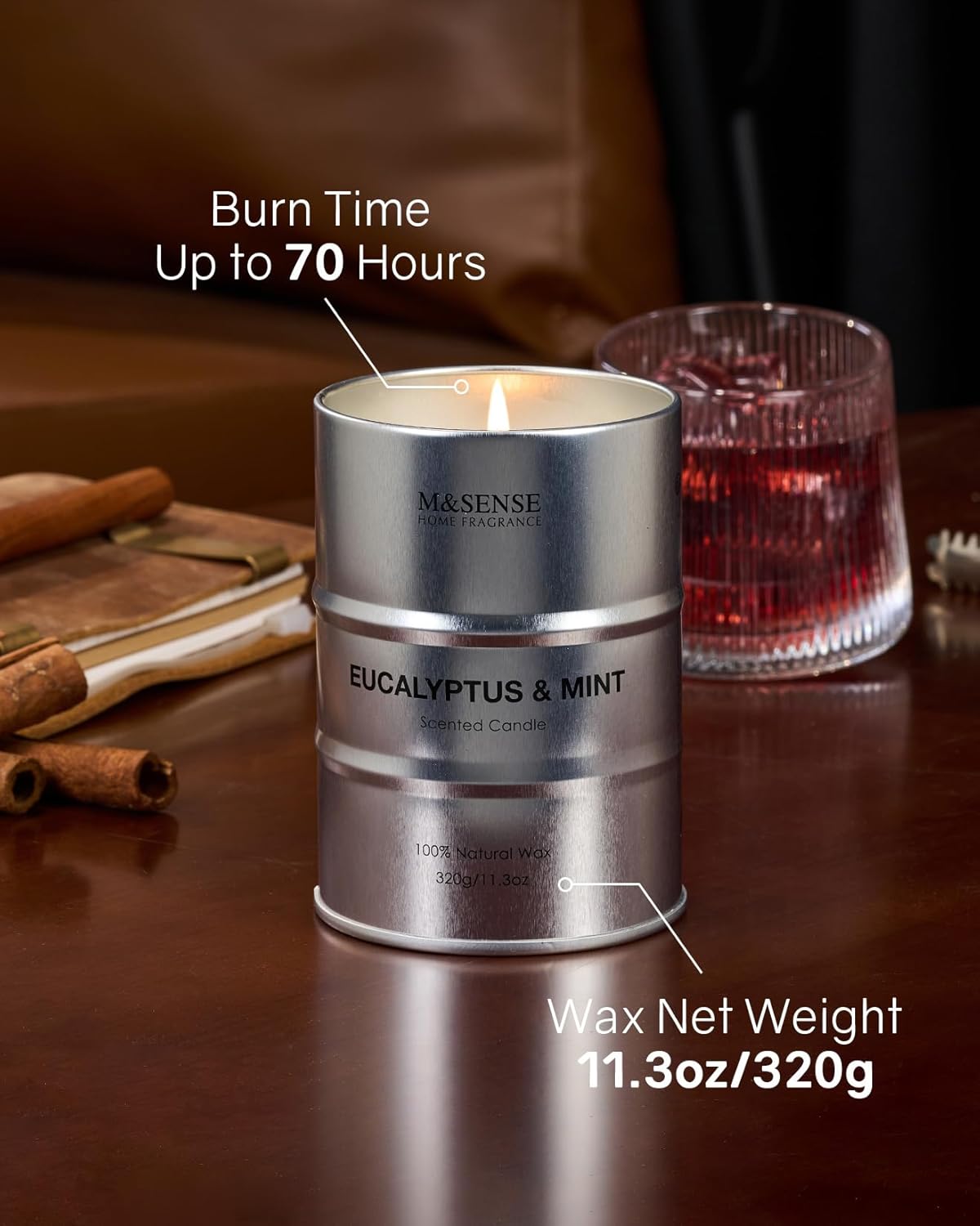 M&SENSE Scented Candle, Eucalyptus Mint Medium Jar Candle for Men, 70 Hours Slow Burning Natural Soy Candles 11.3oz, Stress Relief Aromatherapy Candles Home Decor, Valentines Day Gifts for Him