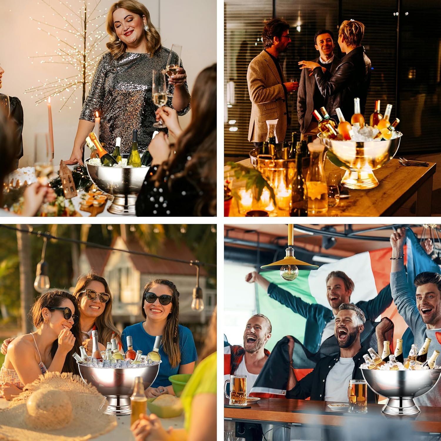 • VERSATILE USE: These ice buckets are adaptable for various settings. Useful as stainless steel bowls or serving trays, they are perfect as punch bowls, cocktail ice buckets, or decorative pieces like jewelry dishes