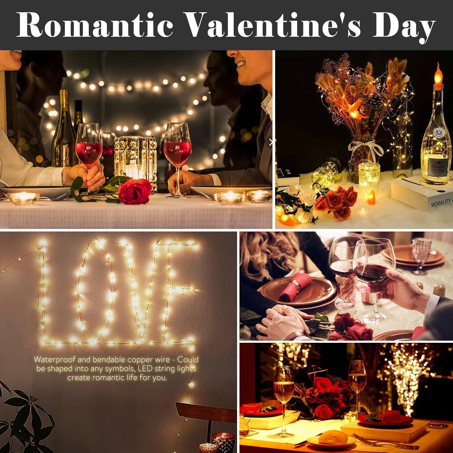 • 3 LIGHTING MODES AND WAIDELY APPLICATION: The fairy lights are super convenient enables to switch 5 flashing modes, Fast Twinkling, Slow Twinkling and Constant Lighting; This versatile battery operated lights can be used for Christmas decoration, holiday, Halloween parties, Valentine's Day, wedding, bedroom and centerpiece table decorations. Giving you different decorative effect and romantic atmosphere