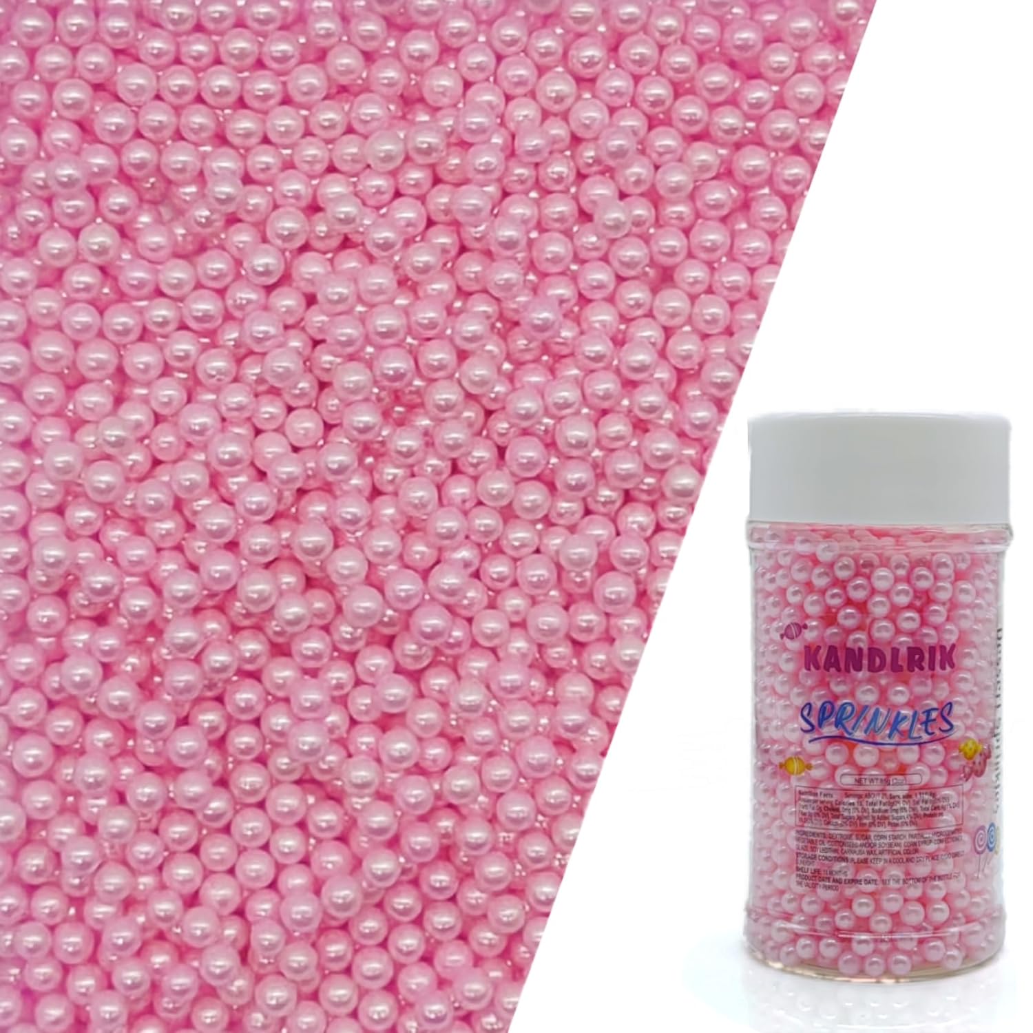 Edible Pink Pearl Sugar Sprinkles Candy 4mm Mini Pearls Cake Decorations Cupcake Toppers Cookie Decorating Perfect for Wedding Party Valentine Halloween Christmas Supplies 3OZ
