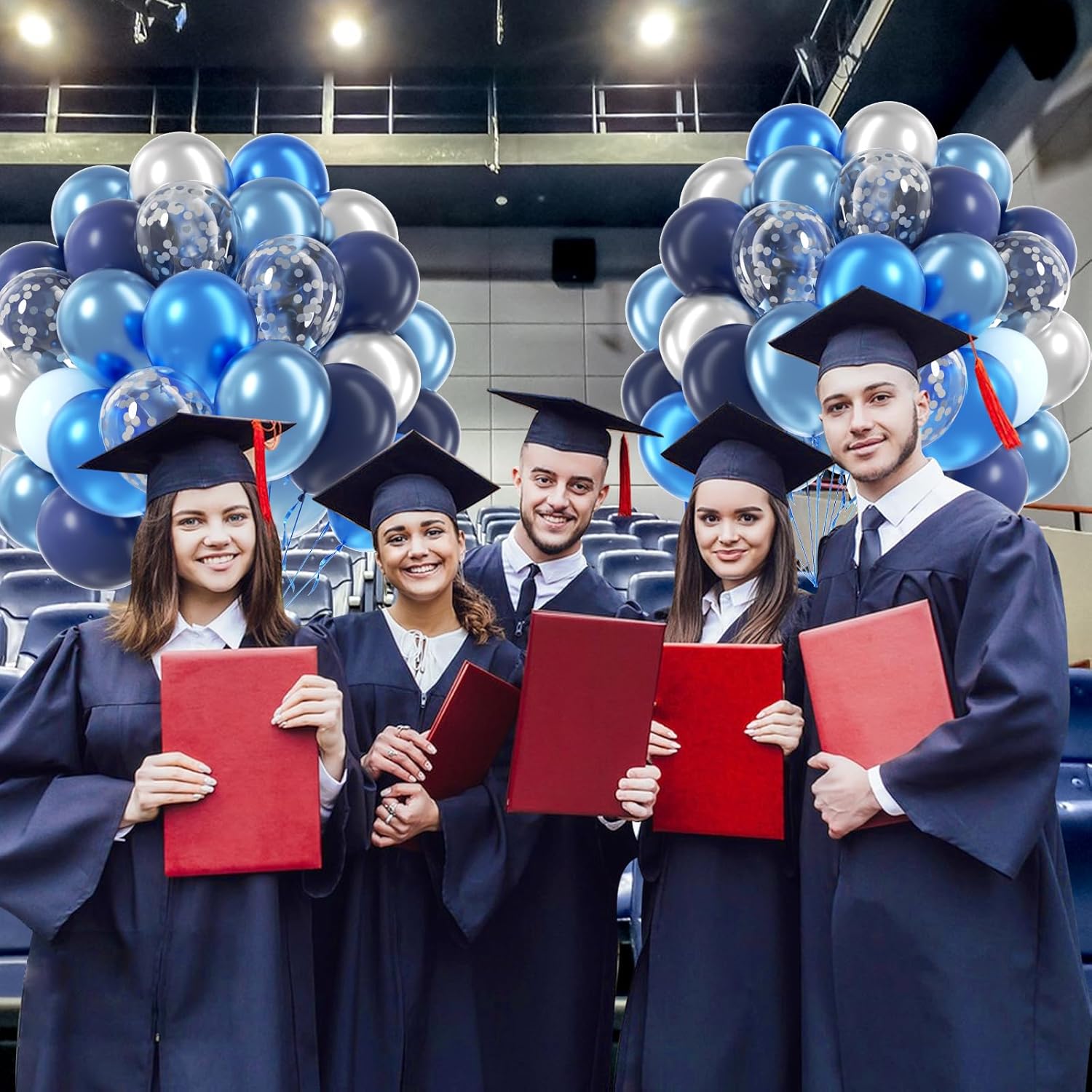 • Package Include: The blue and silver balloons include 12inch metallic blue balloonsx10, 12inch metallic light blue balloonsx10, 12inch metallic silver balloonsx10, 12inch navy blue balloonsx10, 12inch pastel blue balloonsx10, 12inch silver confetti balloonsx10, glue dotsx20, blue ribbonx1