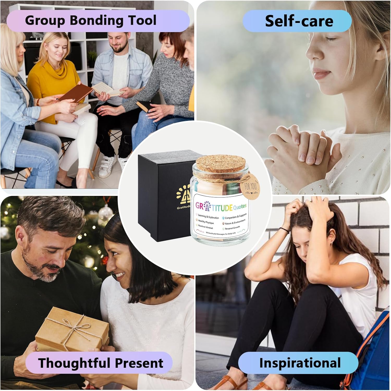 Gratitude Quotes Jar with 90 Colorful Notes, Daily Gratitude Affirmations for Thankfulness, Thanksgiving Thank You Gifts, Graduation Fathers Gifts for Dad Father Man Women Female Friends