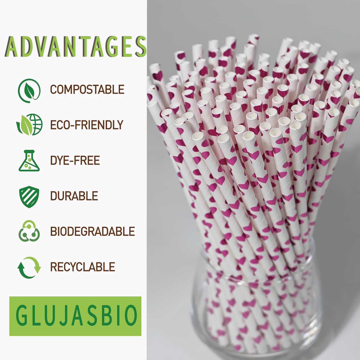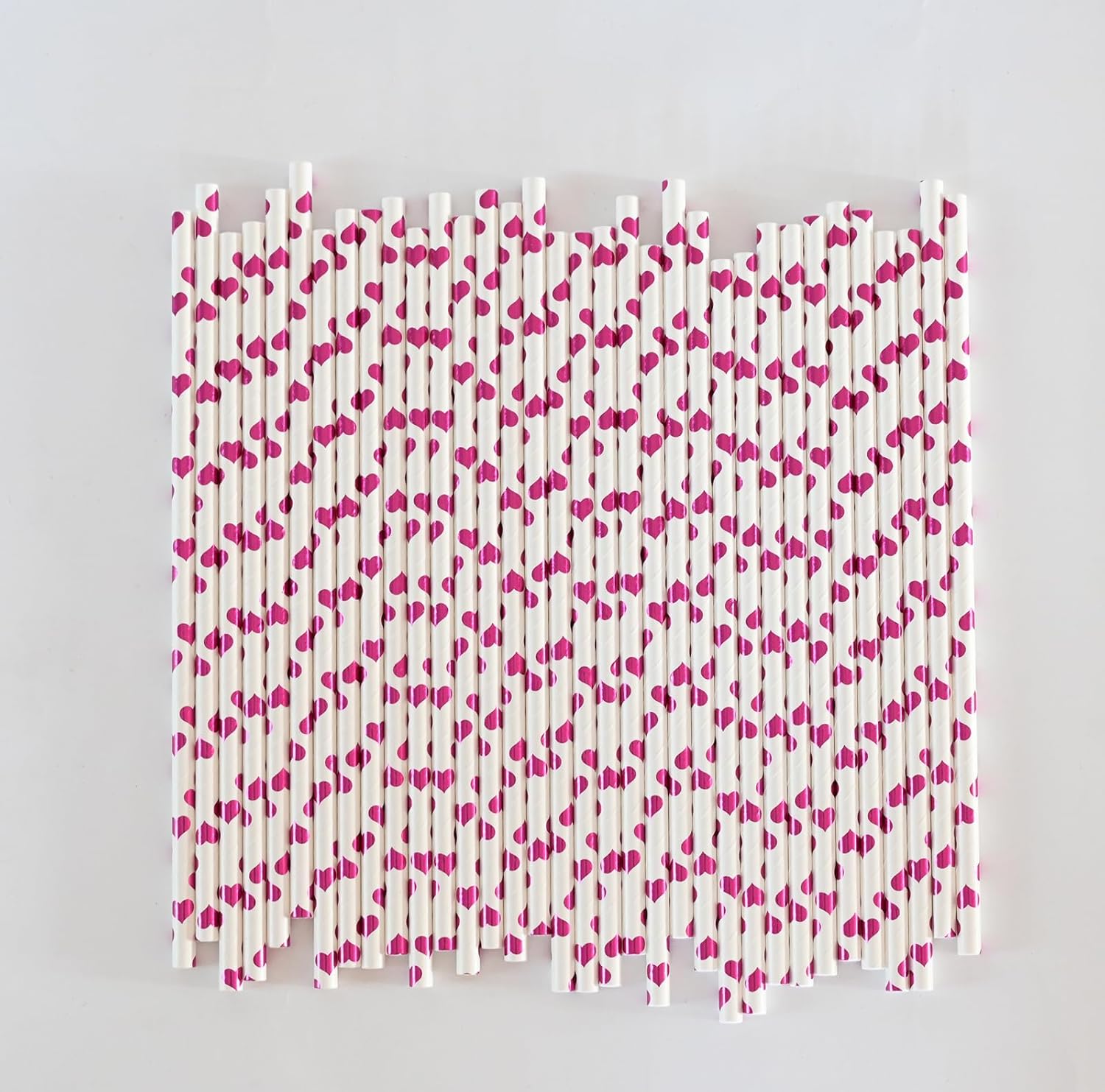 Paper Straws, Disposable Drinking Straws Biodegradable 7.75 inch,for Wedding Birthday Decorative Holiday Party Supplies - 100 Count, Foil Rose Pink Heart