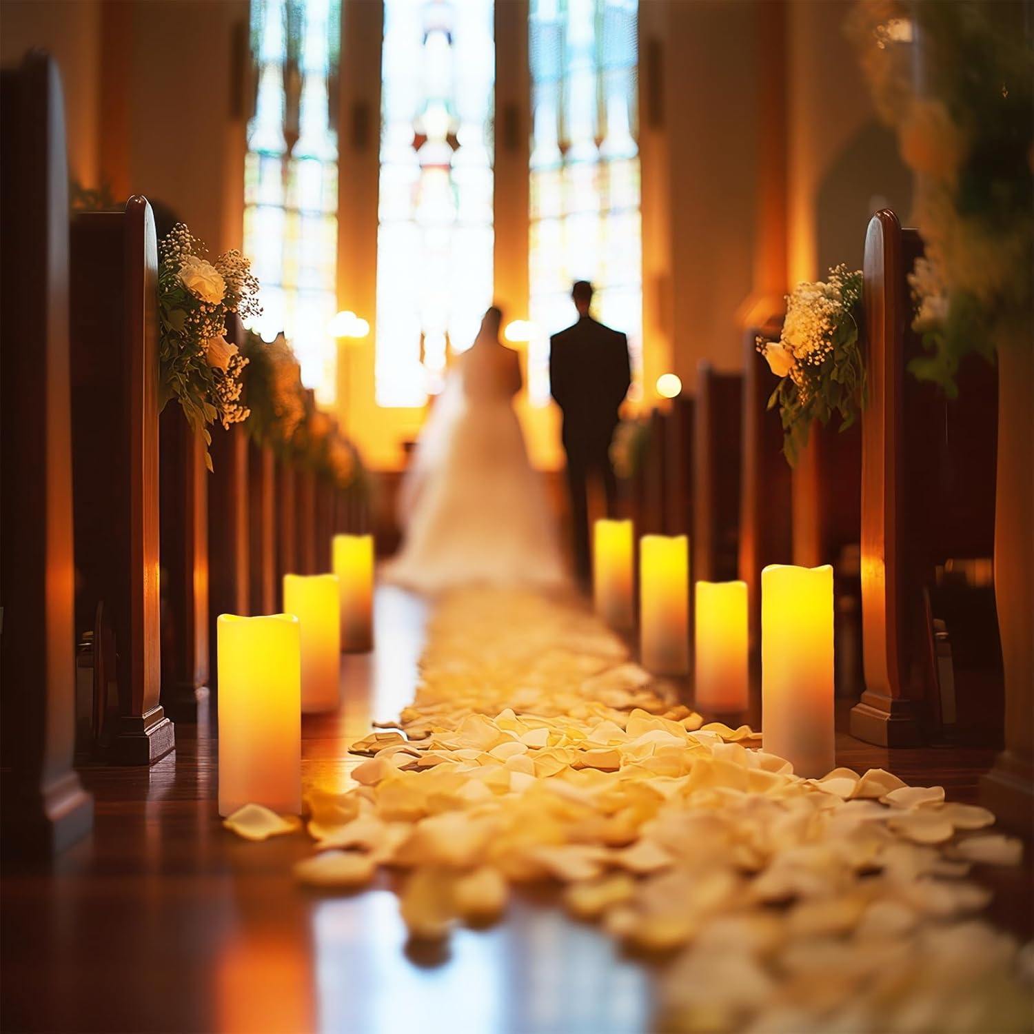 • 4. 12-Piece Set with 4 Unique Sizes for Versatile Decor Includes 12 ivory candles in two customizable size combinations. Flexible for tiered displays, pathways, or tablescapes. Powered by 2 AA batteries (not included).