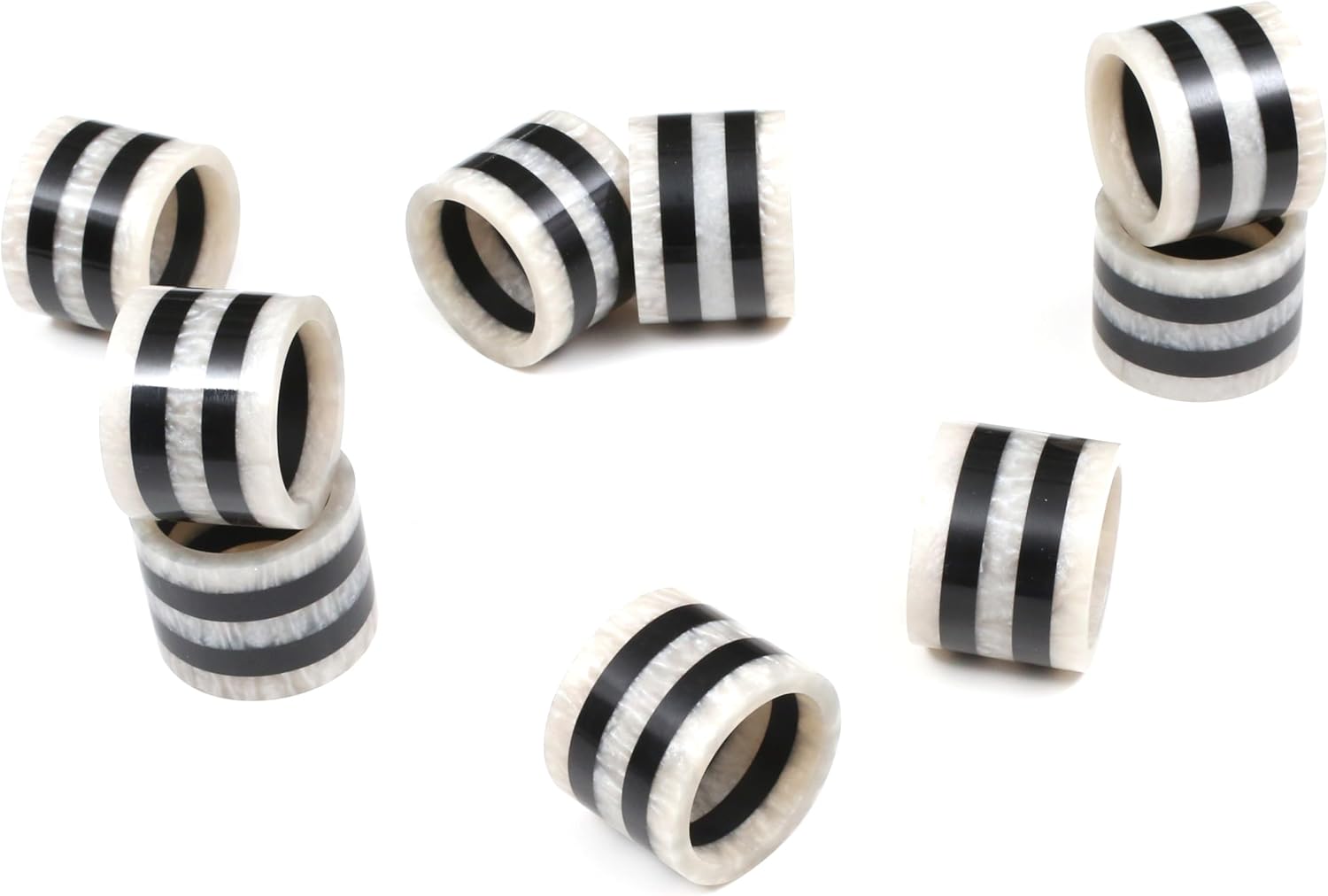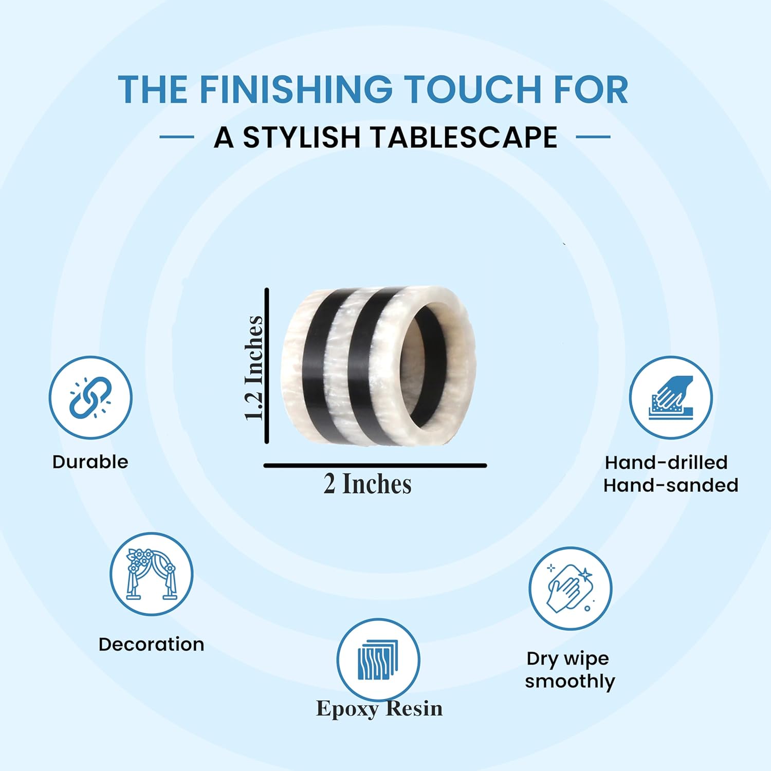 12-Pcs Epoxy Resin Napkin Rings - Handmade Elegant Napkin Holders for Table Décor, Dining, Weddings, Holidays & Special Events - Durable & Lightweight, Easy to Clean (Black White) - CLEENTABLE