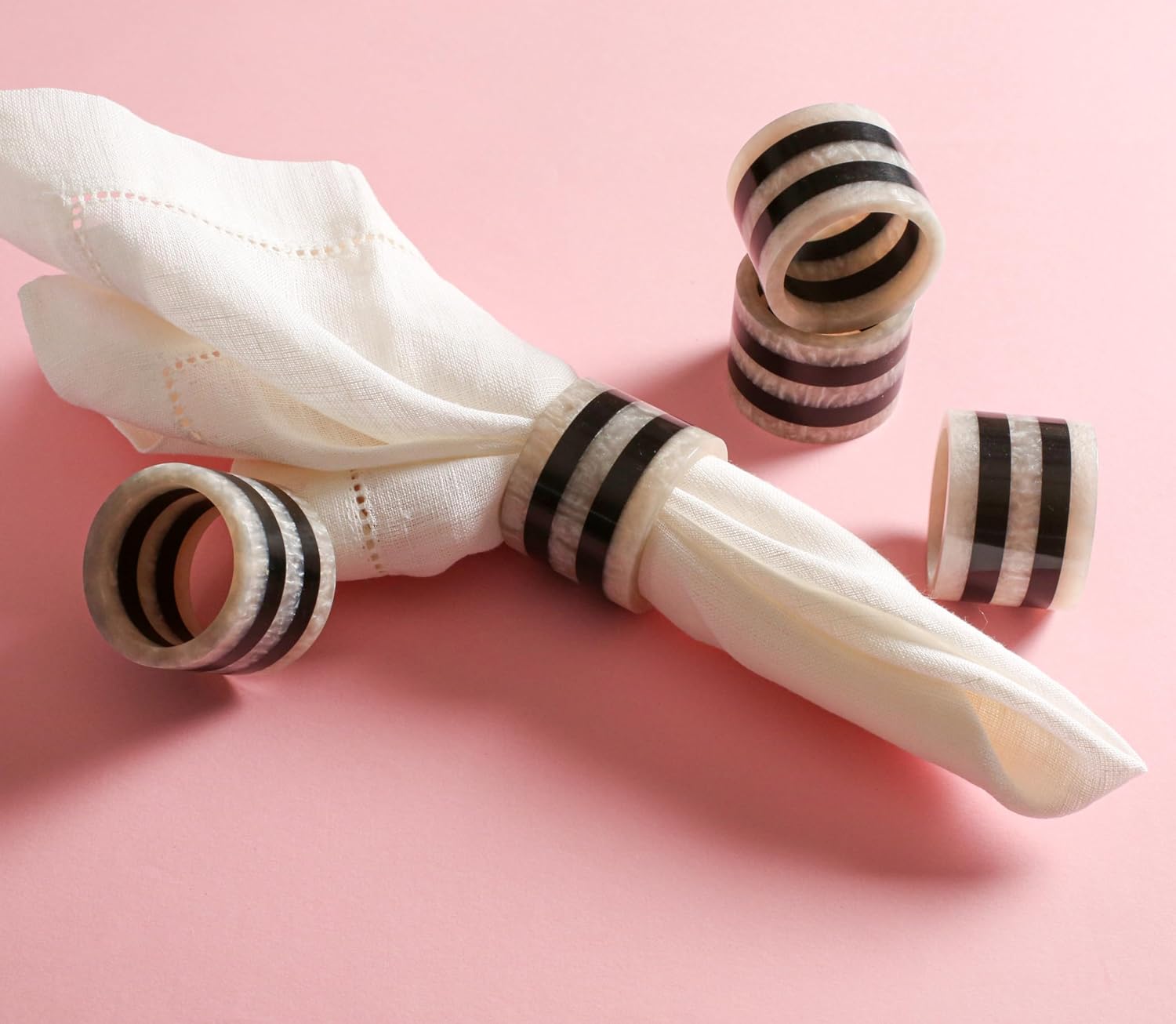 • ✅ PERFECT SIZE & PACK: Set of 12 napkin rings in stylish black & white, measuring 2 x 2 x 1.25 inches - ideal for any table setting.