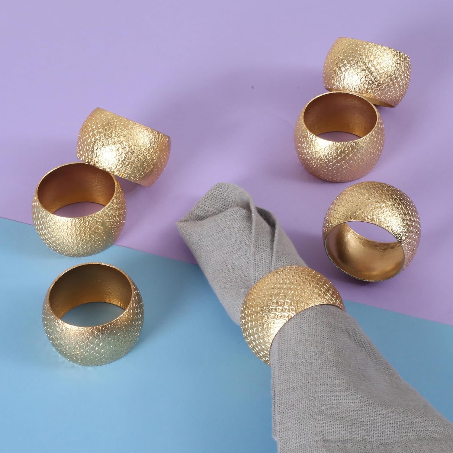 Napkin Holders for Cloth Napkins Set of 12 - Lightweight Metal Round Napkin Holder Hammered Textured,Elegant Table Décor for Weddings, Dinners, Holidays, Events, Kitchen & Dining (Gold) - CLEENTABLE