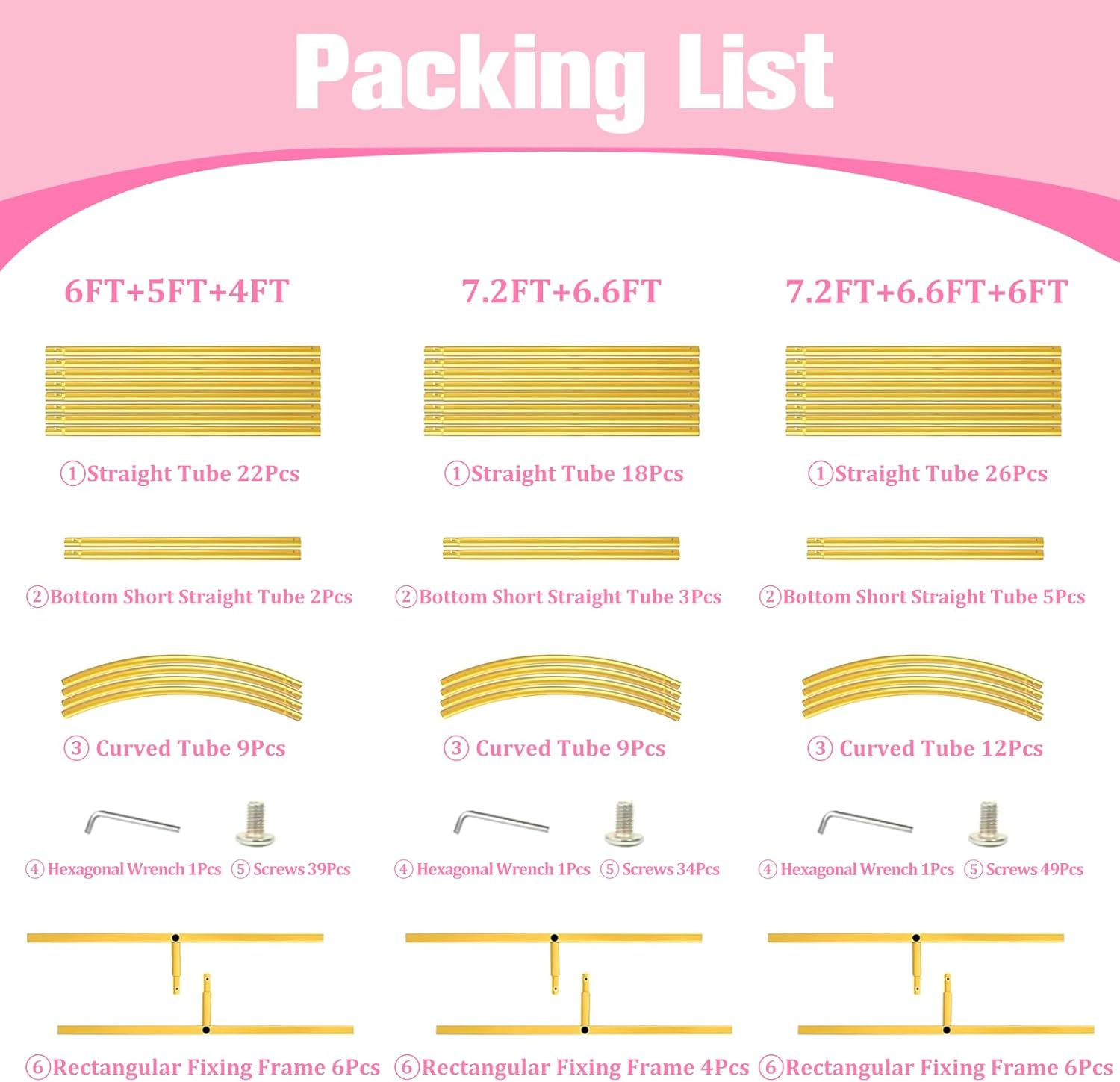 • 【Easy to Assemble】Our gold backdrop arch stand can be quickly assembled with screws in minutes by one person. Disassembly is also extremely convenient and fast. This arch backdrop stand is easy to carry so you can take it with you wherever you need to decorate. Gold metal square wedding arch would be a graceful archway in your party events or gardens.