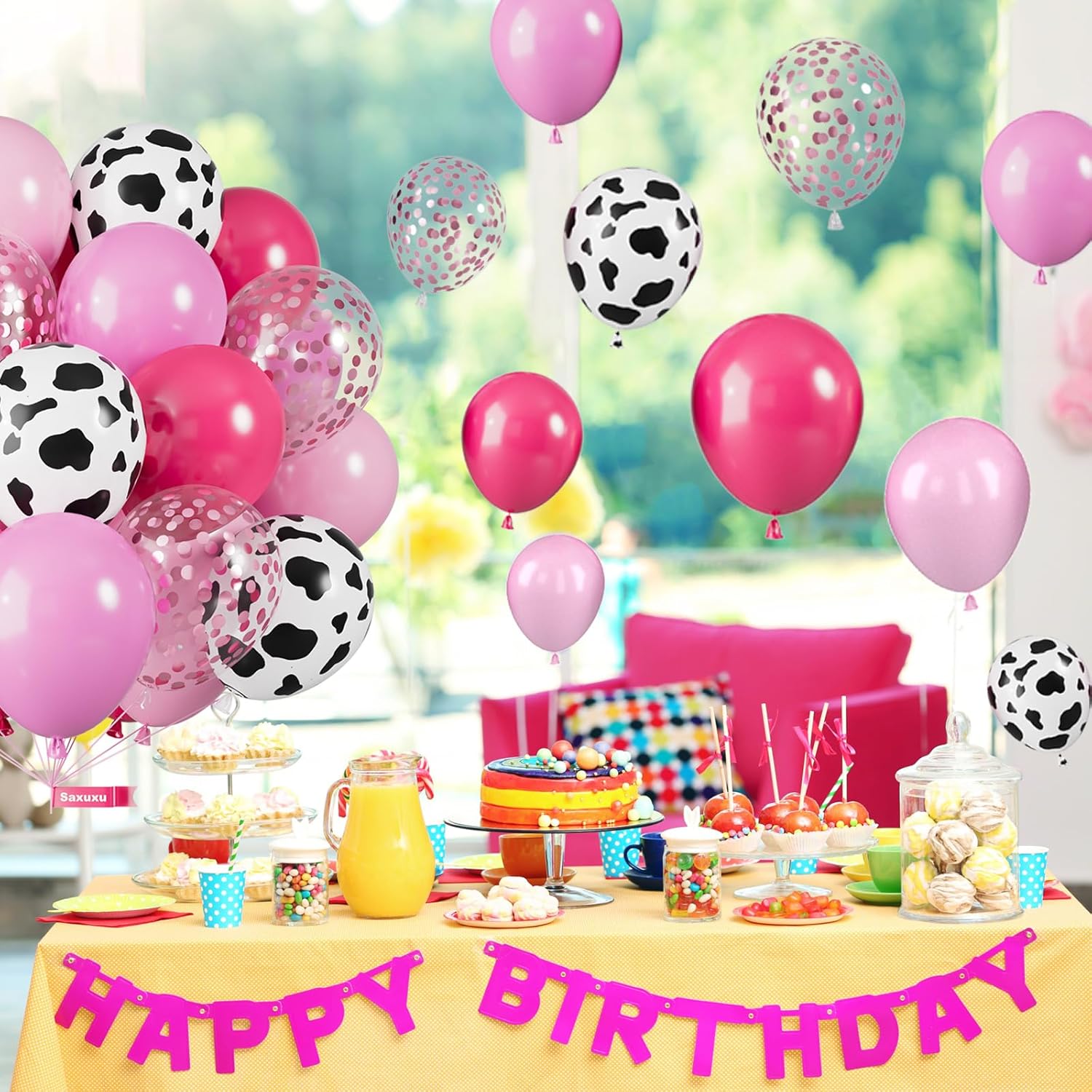• 35 Pcs Pink Cow Balloons: Add a pop of charm to your party with this vibrant set of 35 pcs balloons, including 8* hot pink balloons, 8* pink balloons, 8* maca pink balloons, 6* cow print balloons, 5* pink confetti balloons, and 1* pink ribbons. These cow balloons will make your party venue look stunning and create the wonderful backdrop for unforgettable moments.