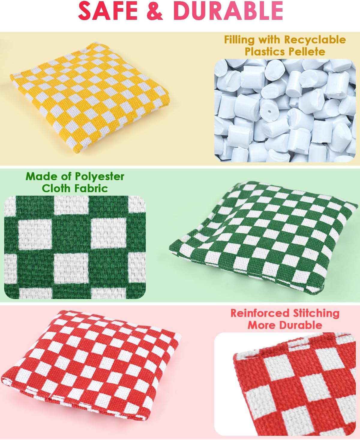 • 【Not Only Using for Games】The Bean Bags not only for carnival games outdoor, bean bag bucketz toss game, but also for circle time learning center, preschool classroom supplies must haves, special education classroom must haves, home schooling materials prek, autism learning materials.