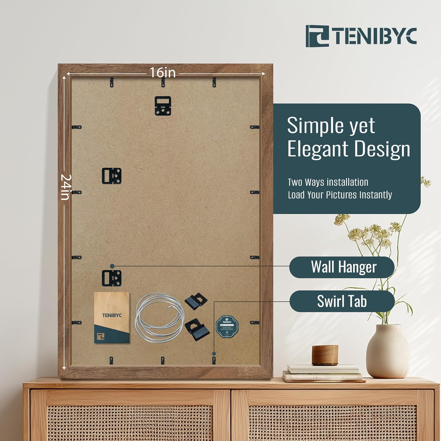 • 【Strong Practicality】Our walnut frame back panel is equipped with multiple hangers, so it can be displayed on the wall horizontally or vertically, perfectly adapting to 16x24 or 24x16 photos. Additionally, our unique spin-lock design ensures a swift and effortless setup