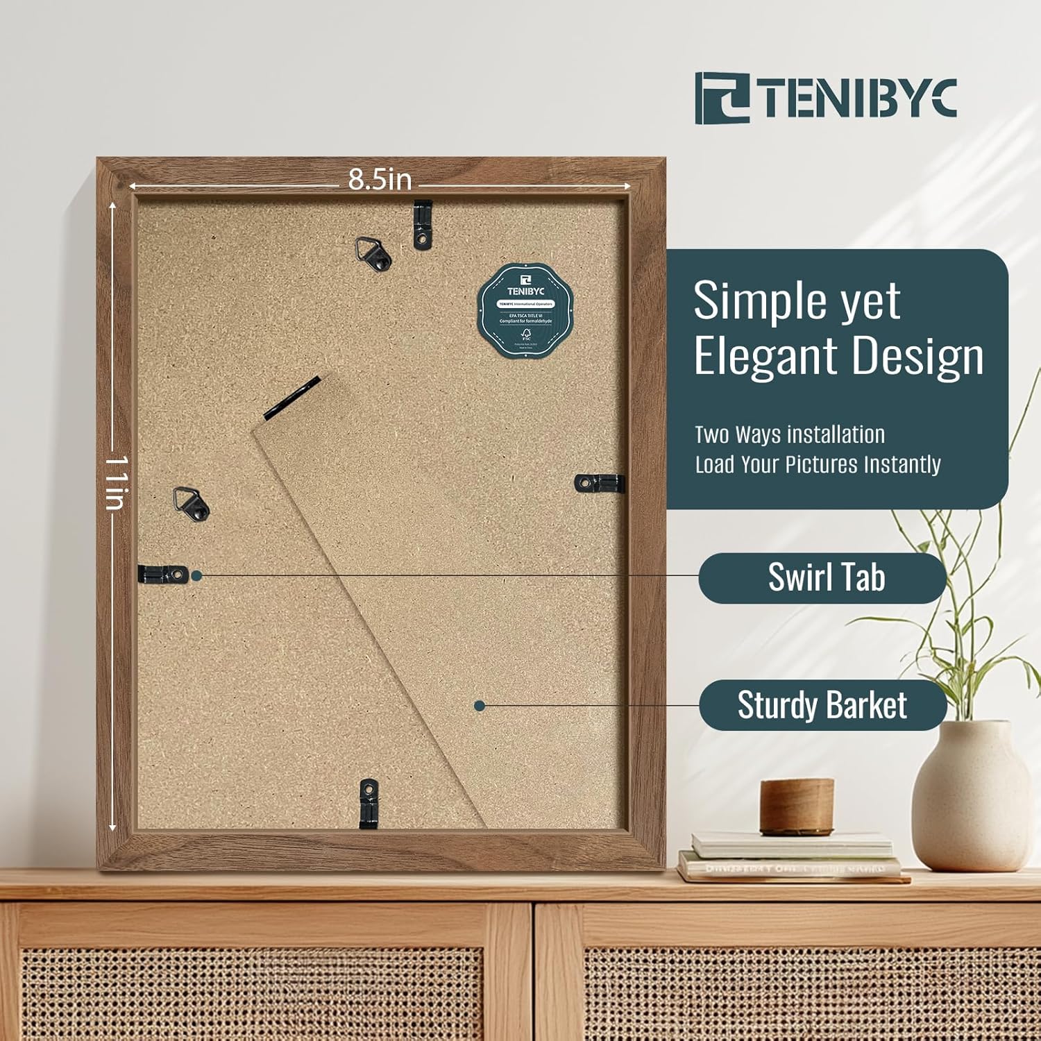 • 【Strong Ornamental Value】TENIBYC walnut frame, like a delicate painting endowed by nature. The color is a steady brown, embellished with dark or light black wood grain, which looks natural and elegant from afar, and exquisite and delicate up close