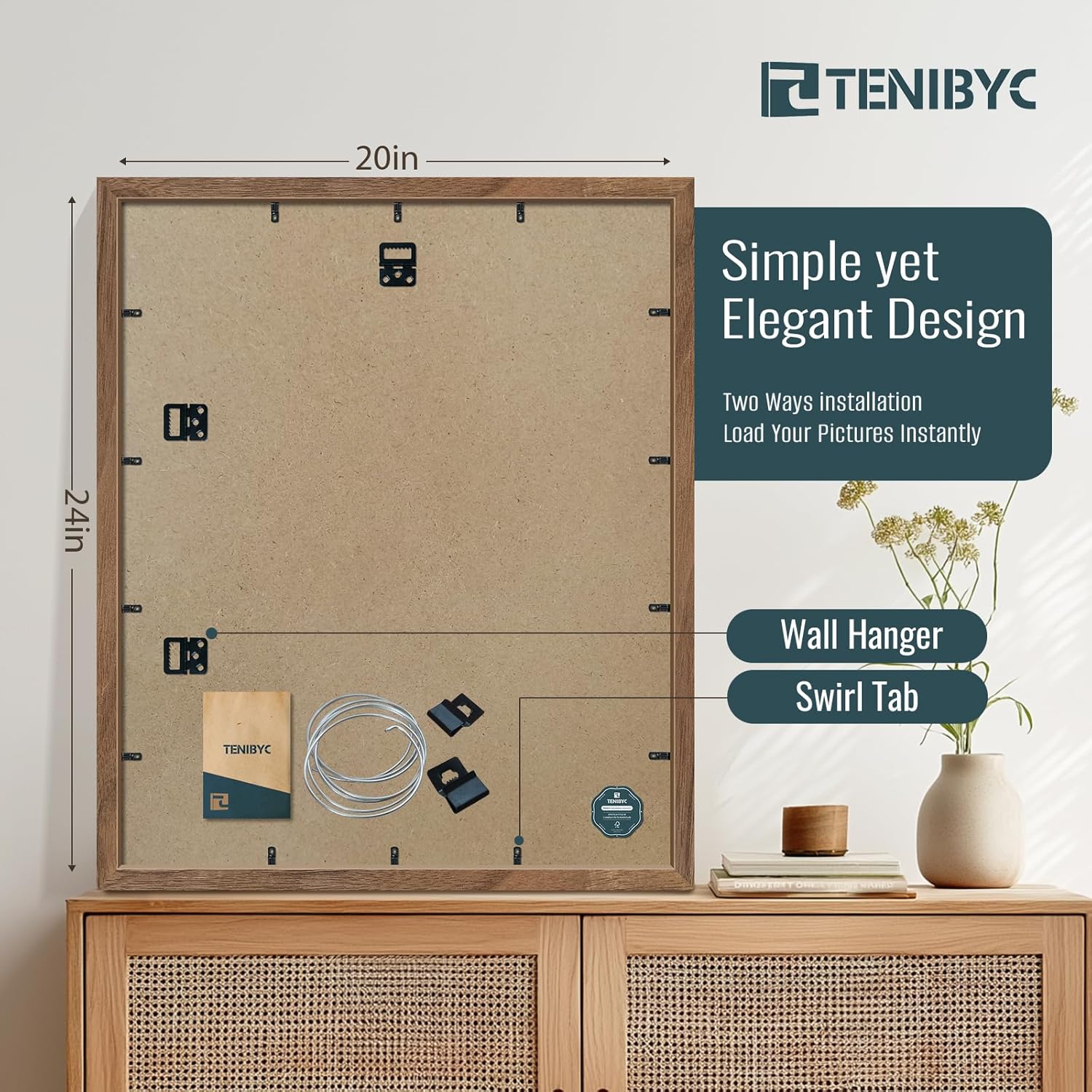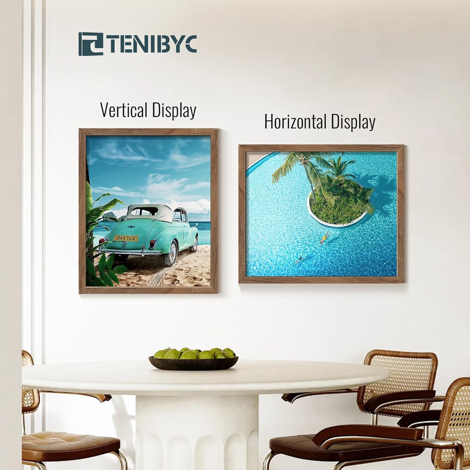 • 【Strong Ornamental Value】TENIBYC walnut frame, like a delicate painting endowed by nature. The color is a steady brown, embellished with dark or light black wood grain, which looks natural and elegant from afar, and exquisite and delicate up close
