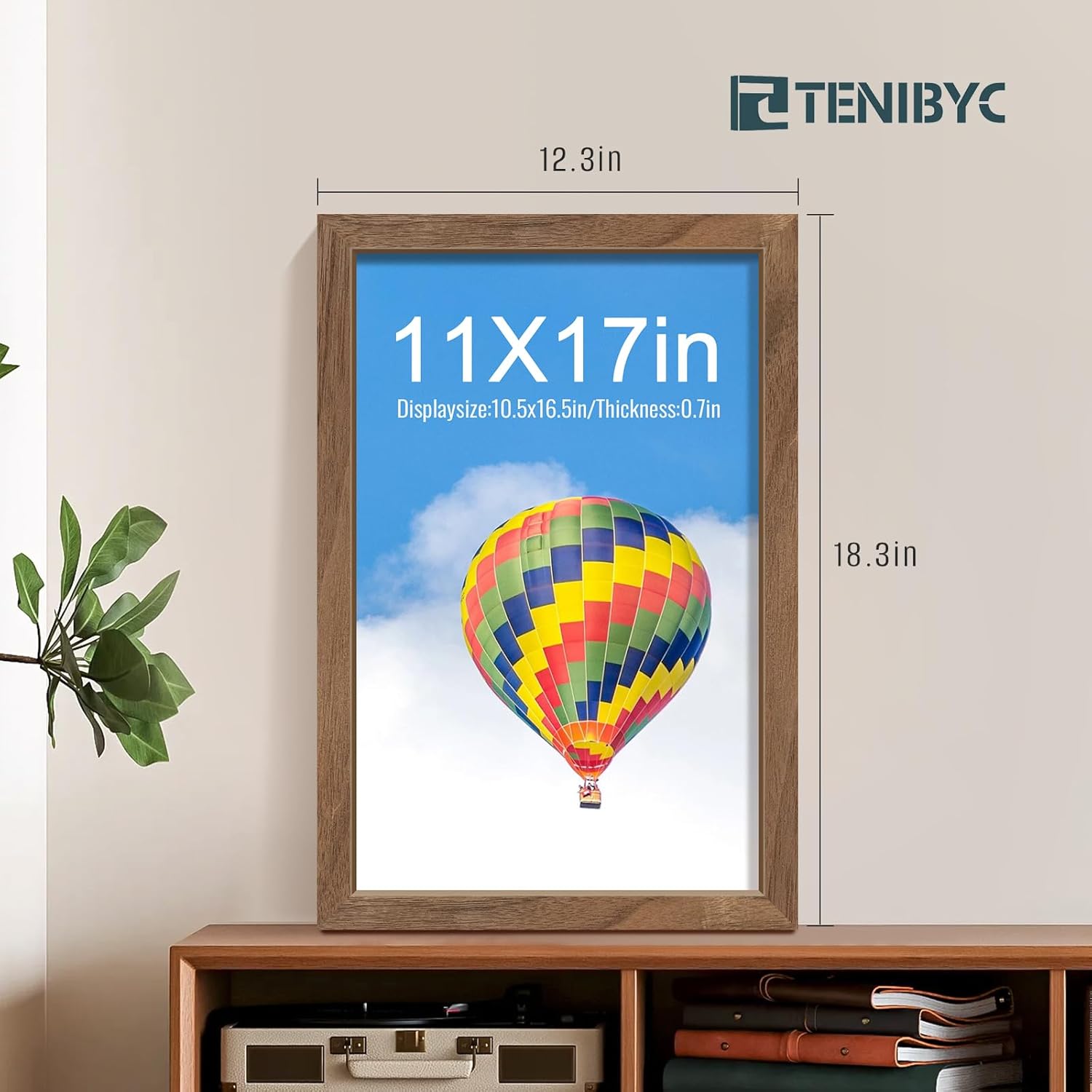 11x17 Picture Frame Set of 4, Walnut Wood Grain, HD Tempered Glass, Brown Wooden Poster Frame, Wall Hanging