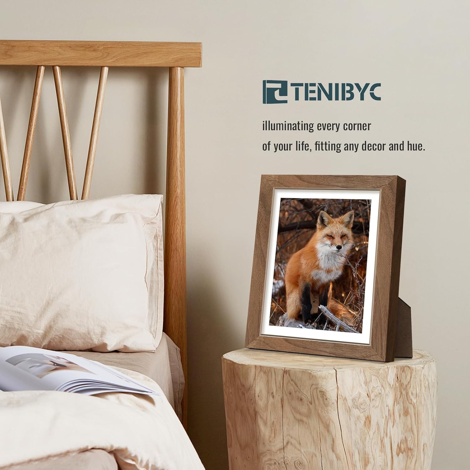 • 【Strong Ornamental Value】TENIBYC walnut frame, like a delicate painting endowed by nature. The color is a steady brown, embellished with dark or light black wood grain, which looks natural and elegant from afar, and exquisite and delicate up close