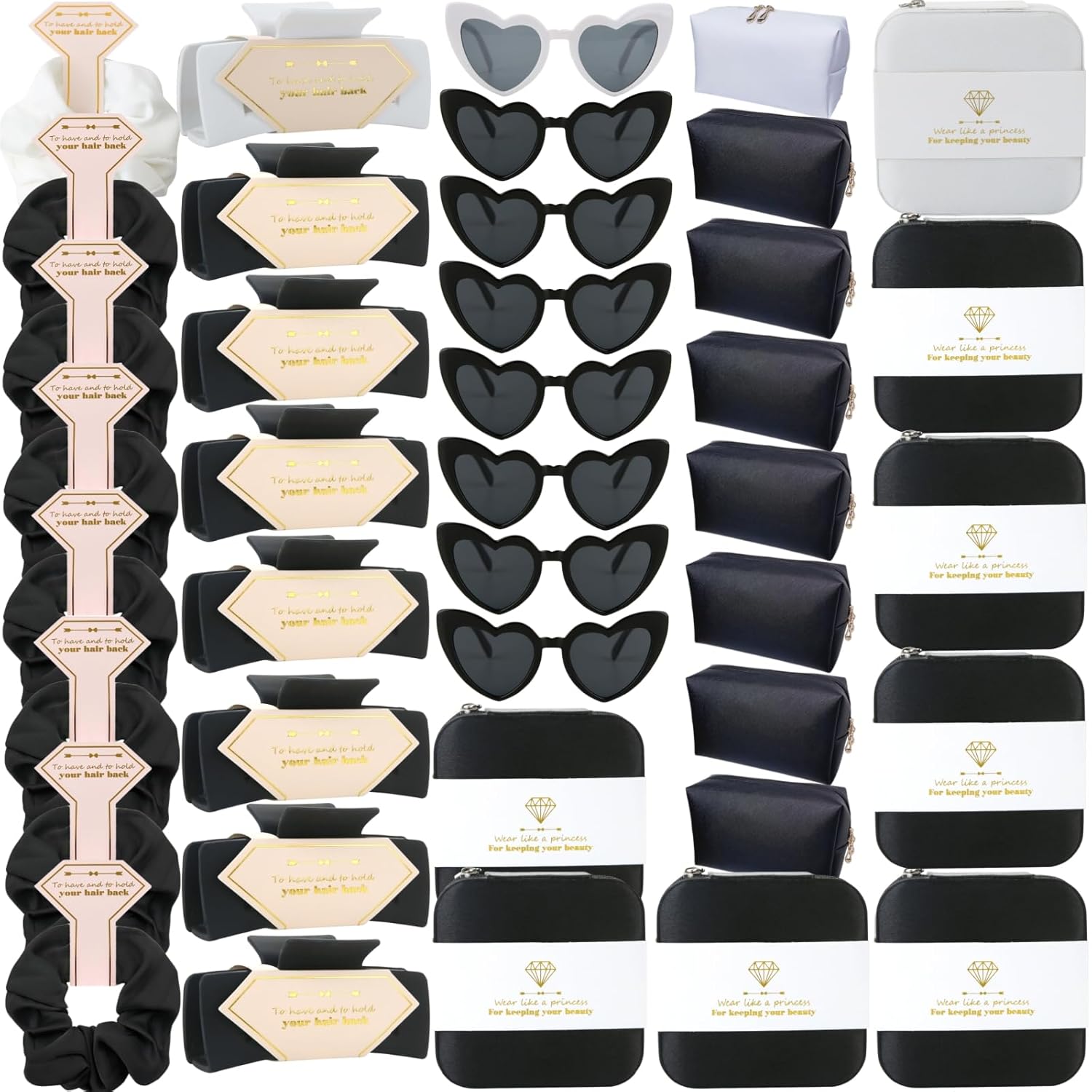 Bridesmaid Scrunchies Proposal Gifts Bachelorette Hair Claws Clips Girls heart sunglasses for Wedding Party Favors (40, White&Black box)