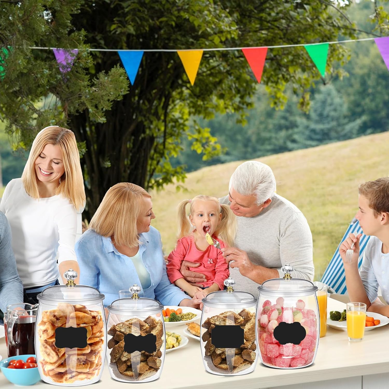 • Package Content: You will receive 2 pcs 64 oz and 2 pcs 90 oz clear plastic jars with lids,4 spoons and 1 label. Ideal for those who bake or entertain frequently, this set efficiently stores assorted goodies and meets various needs. Note: These jars are made of plastic, so please confirm the material before purchasing.