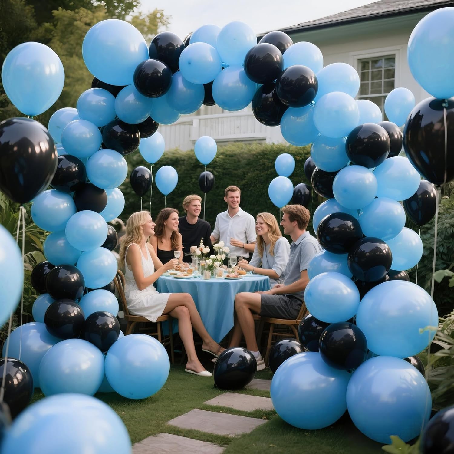 • Baby Blue balloon garland kit: 111Pcs baby Blue balloons pack, including 8 pcs 18 inch balloons, 50 pcs 12 inch balloons, 50 pcs 5 inch balloons, a 5 meter balloon chain, 100 dots of glue dots, a roll of ribbon.