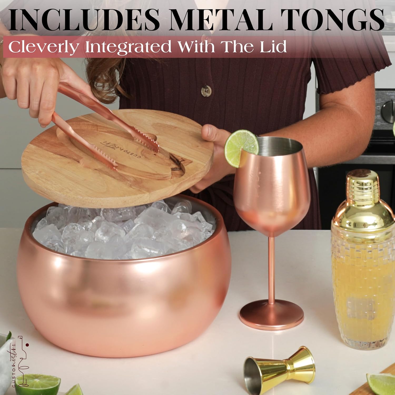 • DOUBLE THE INSULATION DOUBLE THE FUN Large and classy ice bucket insulated ensures long-lasting cold retention for your drinks, included wooden lid helps to avoid the spills and, its sleek design adds a touch of elegance to any occasion