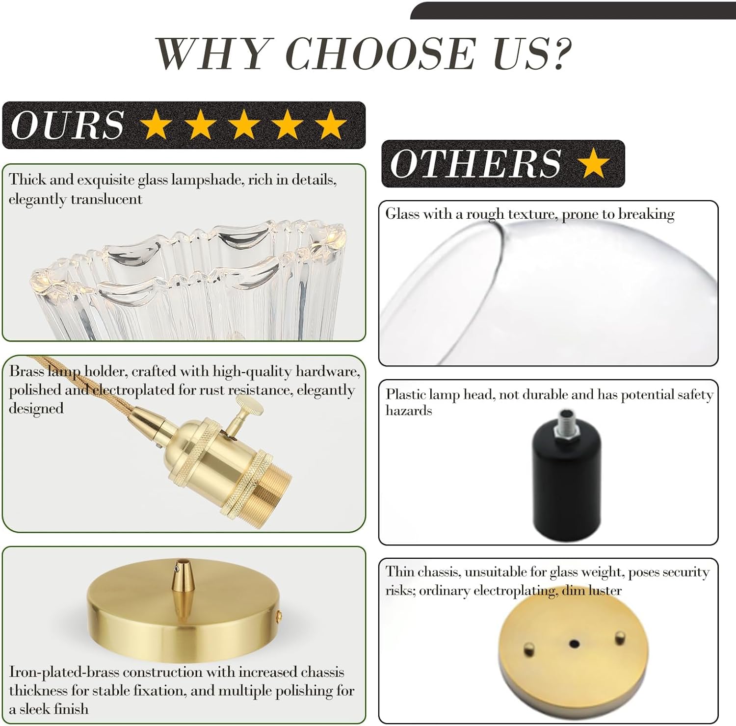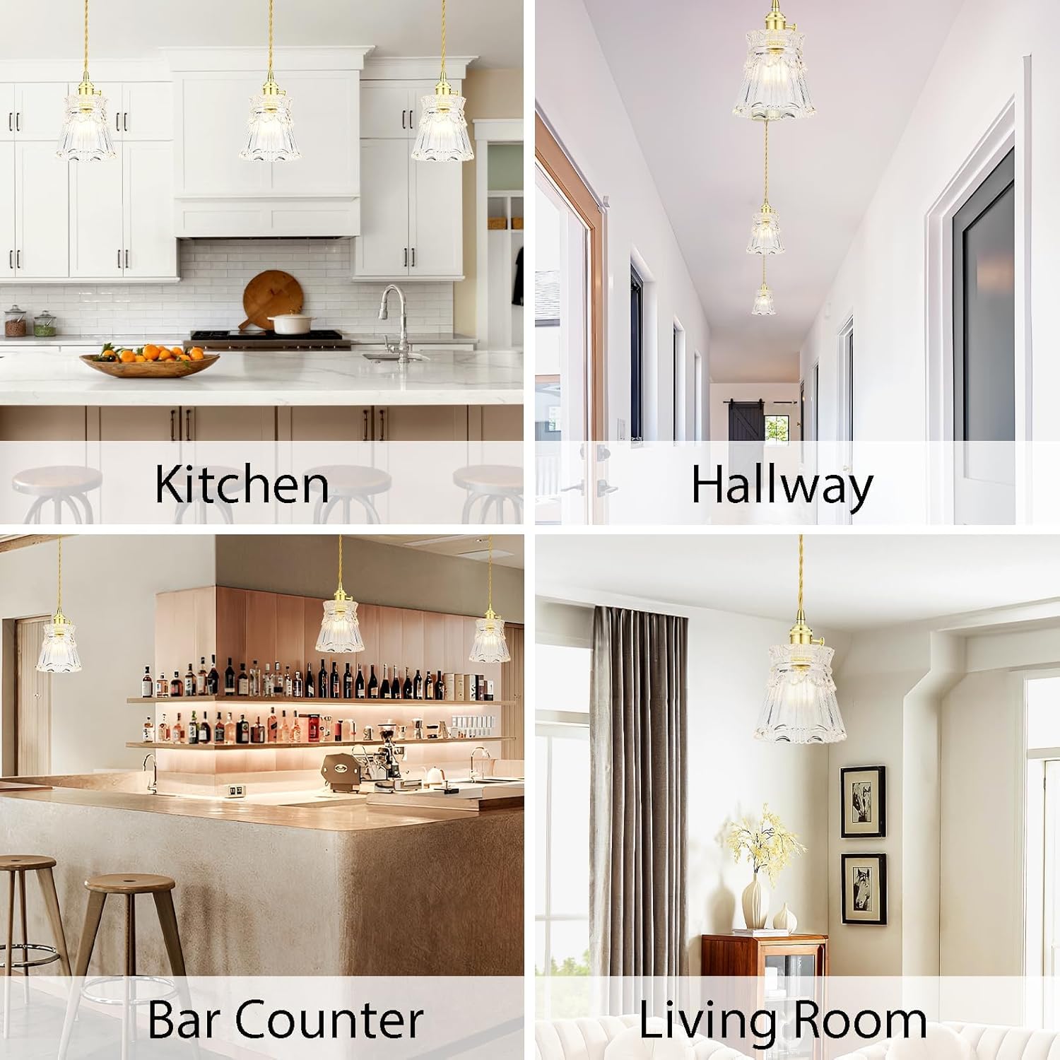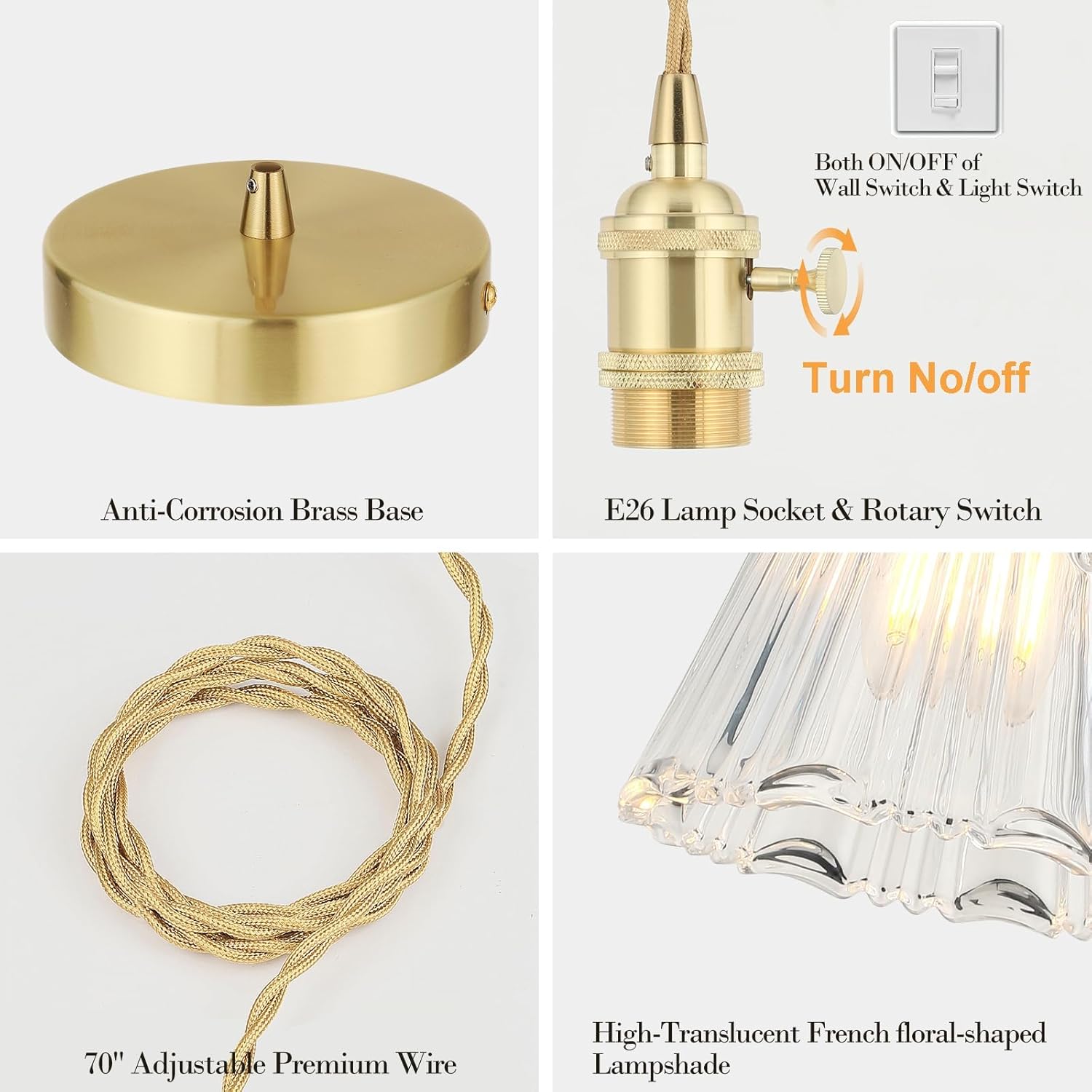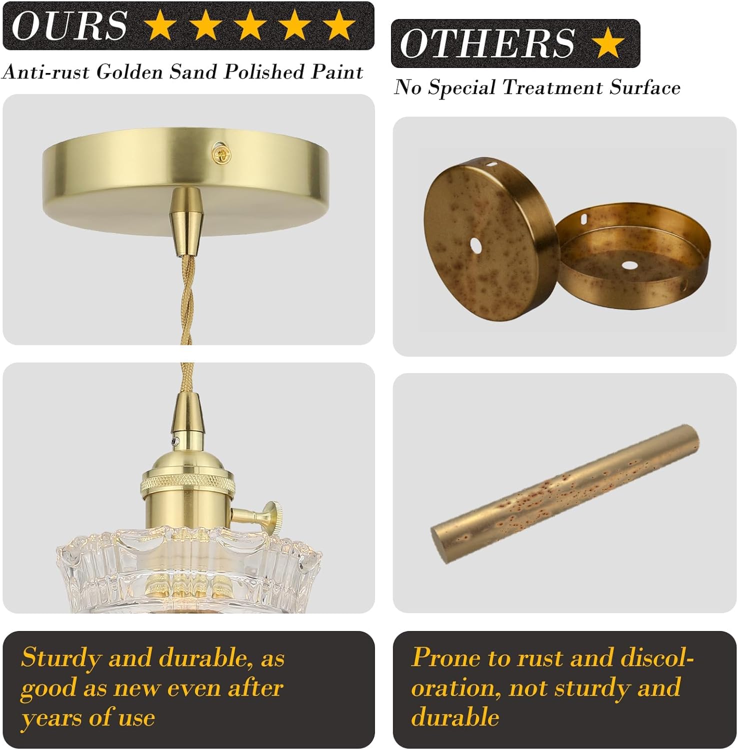 • 【Gold Hanging Light Fixture】 Golden polished brass frame with anti-tarnish coating ensures durability while adding a touch of vintage elegance to farmhouse or modern decor