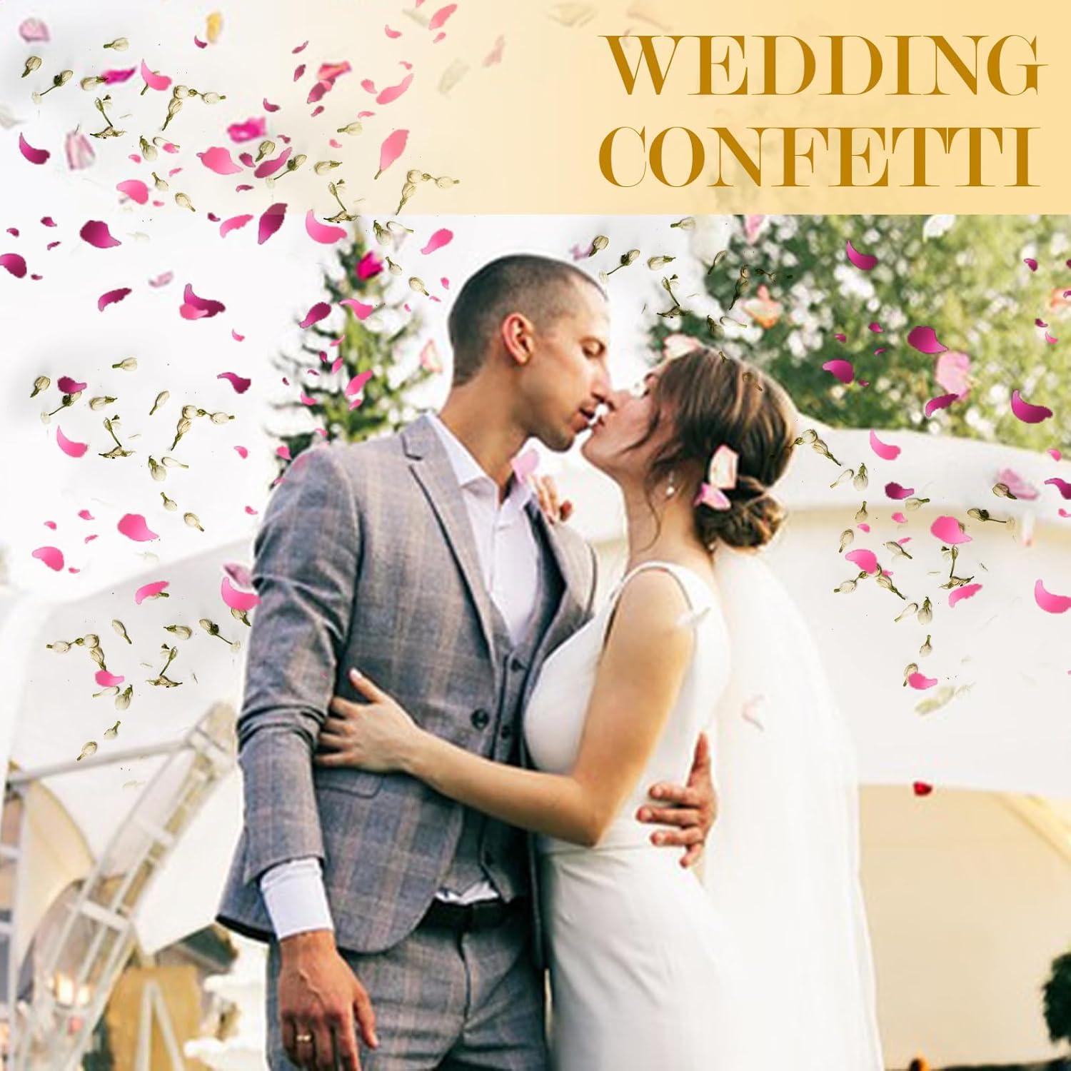 • Natural Beauty: Our flower confetti blends red roses, pink roses, and jasmine buds (4:2:4). Made from high-quality, real petals, they're perfect for green weddings and events. Use them as aisle or table decor, or toss into the air for unforgettable moments. Add natural beauty and sustainability to your special day.