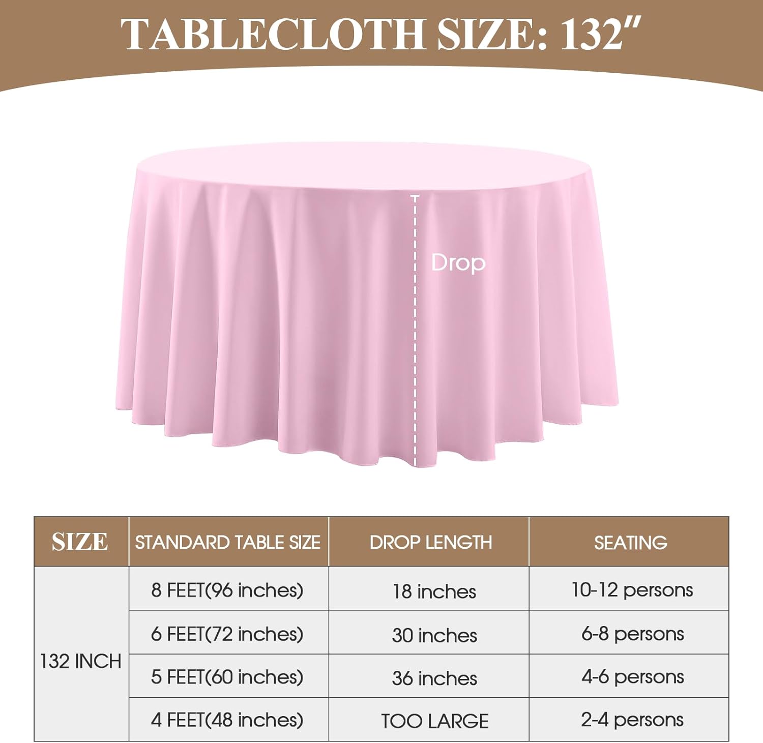 Round Tablecloth 132 Inch 2 Pack Pink Tablecloths Washable Decorative Linen Polyester Table Clothes Cover for Dining Table Banquets Buffet Parties and Wedding