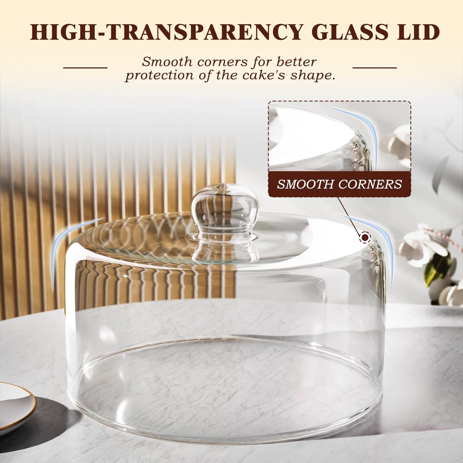 • 【Spacious Glass Dome Lid】Upgraded 90-degree angled glass dome lid prevents contact with delicate decorations, accommodating 4-inch tall cakes with floral designs. Unlike acrylic covers, our shatterproof glass cake stand with dome ensures your creations stay intact – perfect for wedding cake stands and professional bakeries.