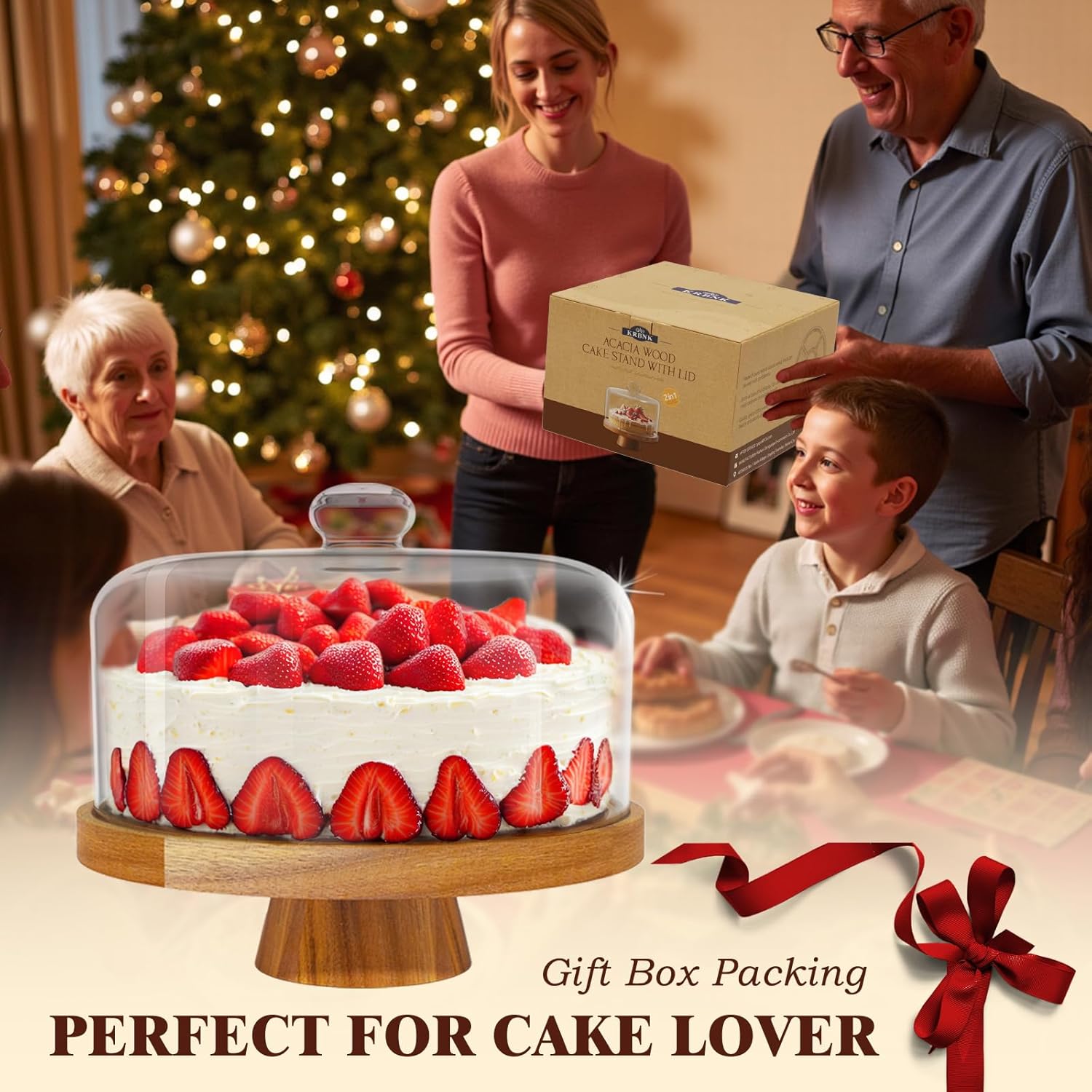 • 【2CM Acacia Wood Base & Wide Foot】Premium 2cm-thick acacia wood cake plate resists warping, paired with a 13cm-diameter widened wooden foot for anti-tip stability. Safely hold heavy cakes or charcuterie. Cake stand with lid combines rustic charm and modern durability for kitchens and events.