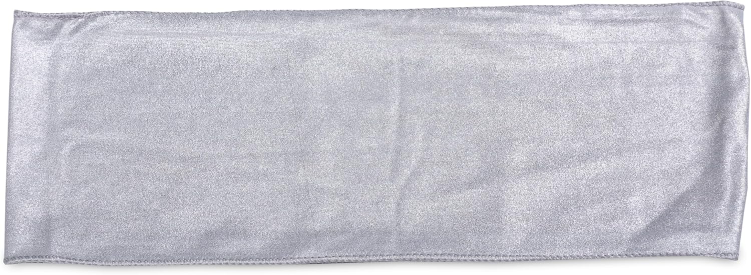 VDS Pack of 300 PCS | Metallic Silver | Spandex Chair Sashes Bows Without Buckle | Stretch Elastic Banquet Universal Folding Chair Bow Band for Wedding Party Conference Celebration Event Decoration