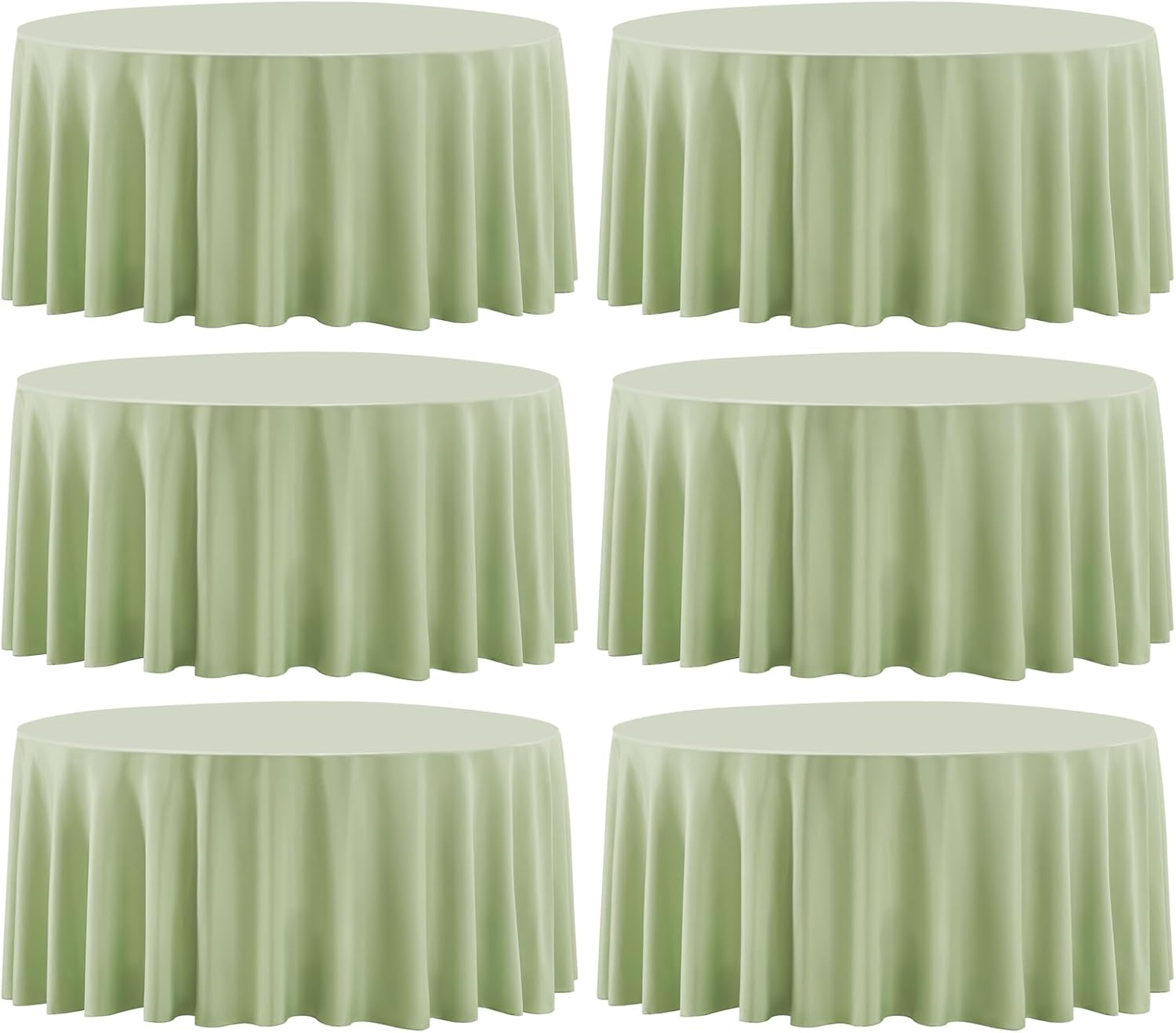Round Tablecloth 132 Inch 6 Pack Sage Green Tablecloths Washable Decorative Linen Polyester Table Clothes Cover for Dining Table Banquets Buffet Parties and Wedding