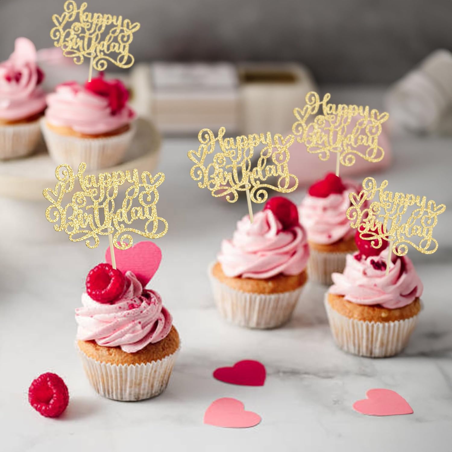 • --Happy Birthday Cupcake Toppers are so cute and good for happy birthday theme party, wedding anniversary celebrating theme party cupcake decorations. They can make your cupcake more attractive and bring the fun to your party. You can also apply them for ice cream, fruits, cookies and other desserts.