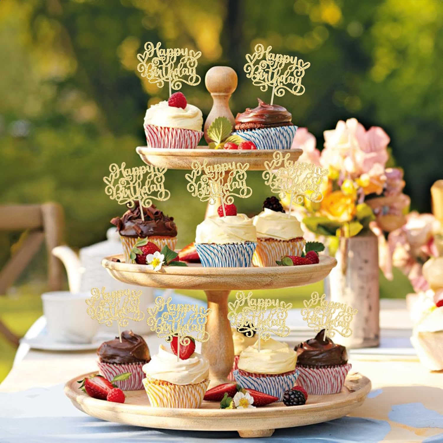 • --Premium Material: These Happy Birthday Cupcake Toppers are made of high quality 300 gram card stock and food-grade toothpick, very safe to put them on cakes, cupcakes, ice cream, fruits, pie, dessert, cheese or any dish and food appetizer you want to decorate Happy Birthday party decorations.