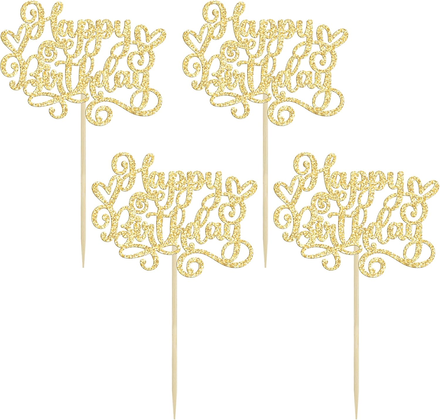 Gyufise 24Pcs Happy Birthday Cupcake Toppers Glitter Happy Birthday Cupcake Picks for Celebrating Happy Birthday Anniversary Theme Party Cake Decorations Supplies Gold