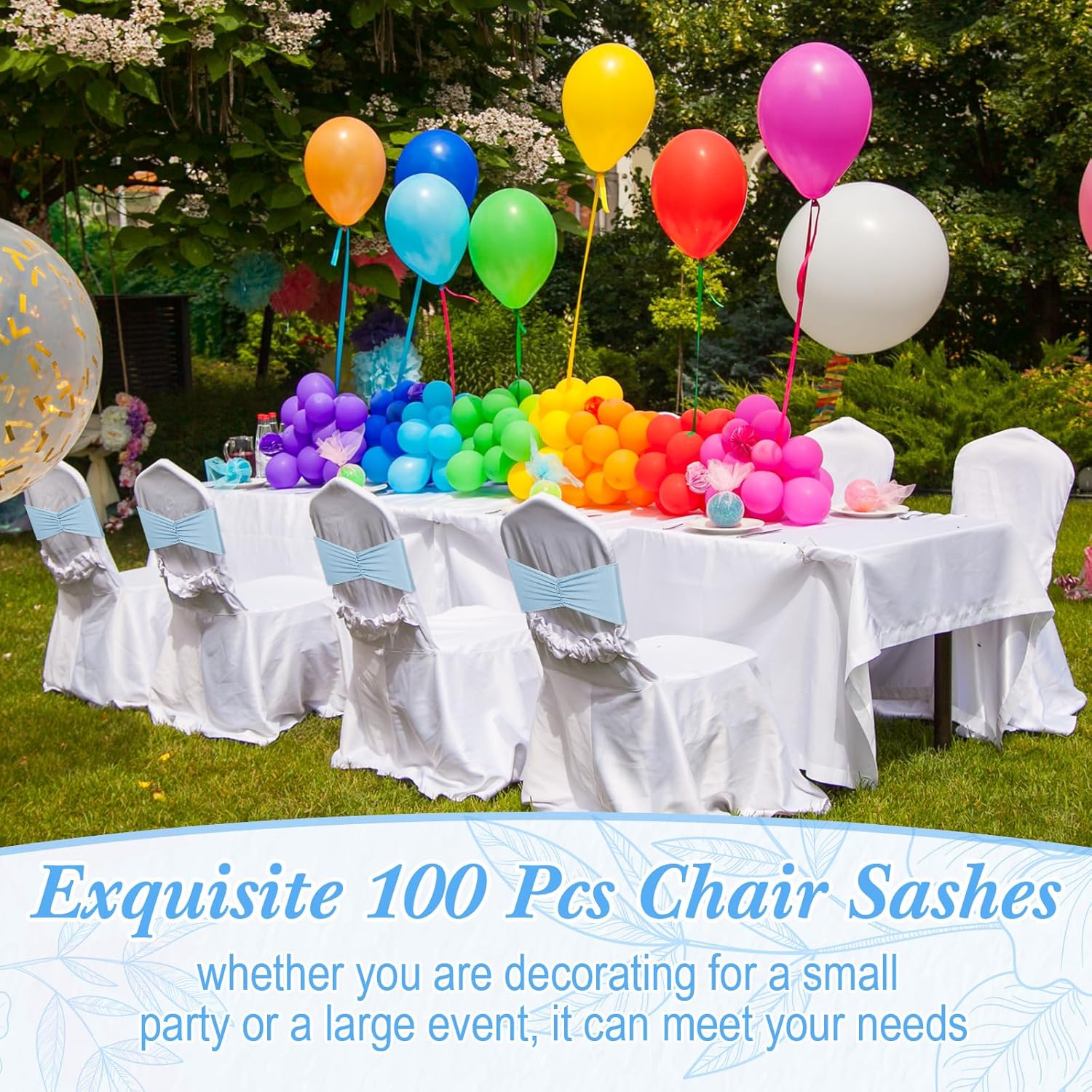 • Sufficient Quantity: you will receive 100 packs of chair sashes in lovely colors; Whether you're decorating for a small party or a large event, the ample quantity meets your needs for setup, replacement, or sharing with others; We've upgraded the chair sashes with a reinforced center spring to better hold their shape and prevent sagging or thread breakage, making them more long-lasting