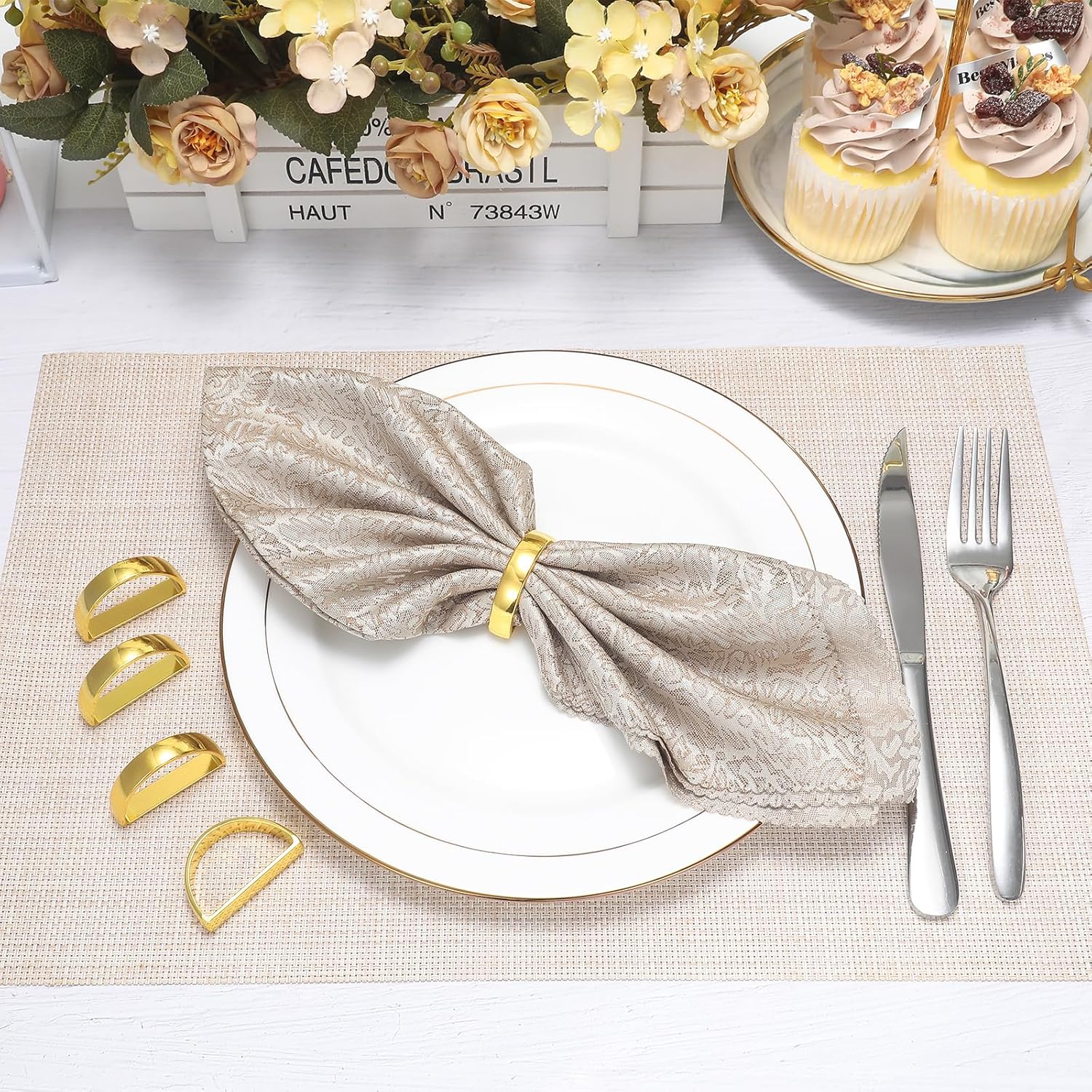 • Classy and Pretty:These napkin ring holders feature a beautiful minimalist design that adds a touch of elegance to your dining setting, The metallic gold finish is sleek and modern, making them versatile for both casual and formal occasions