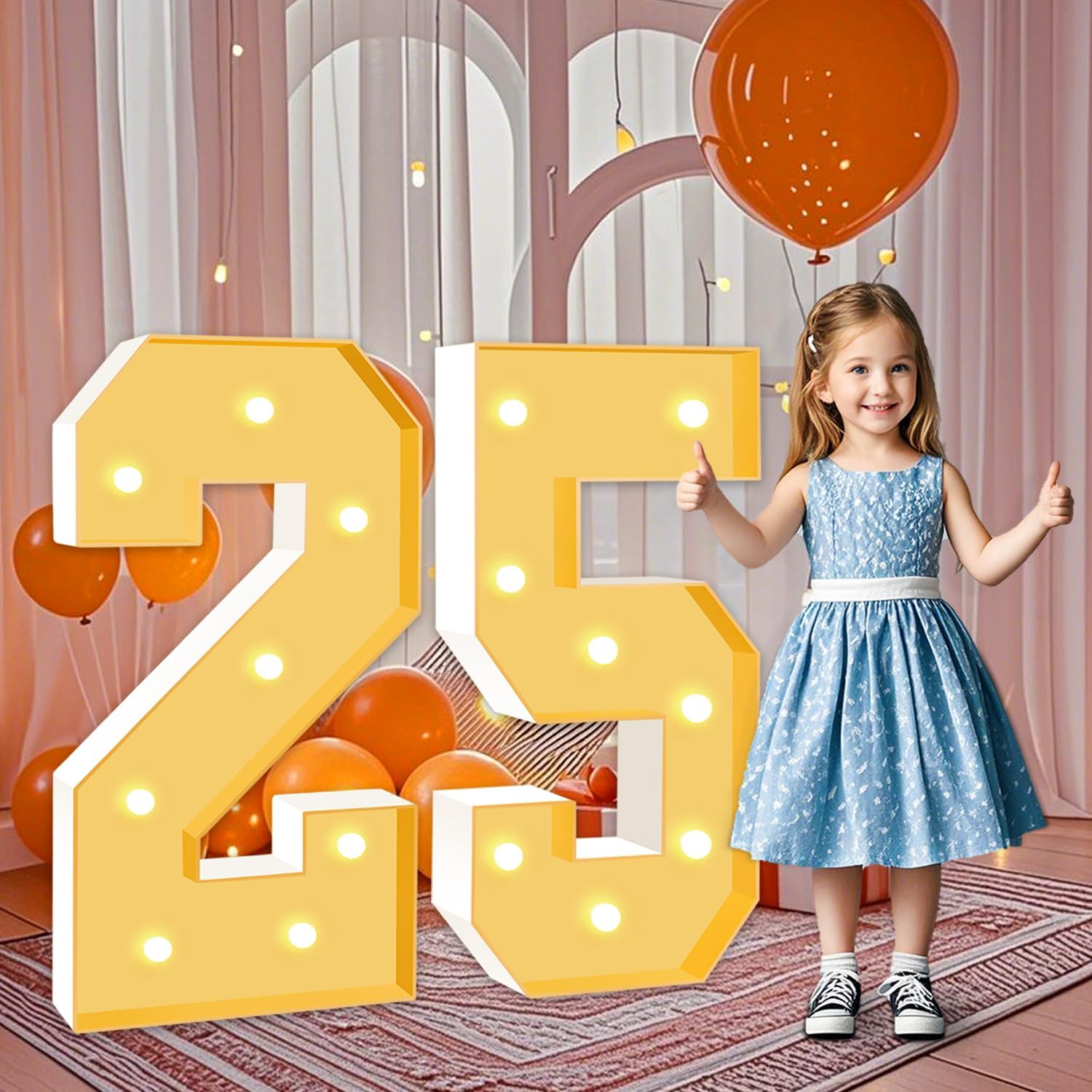 3FT Marquee Numbers 25, Large Light Up Numbers 25th Birthday Decorations for Girls Boys, Cardboard Number for Women Men Anniversary Party Decor Backdrop, DIY Foam Board Mosaic Number Sign