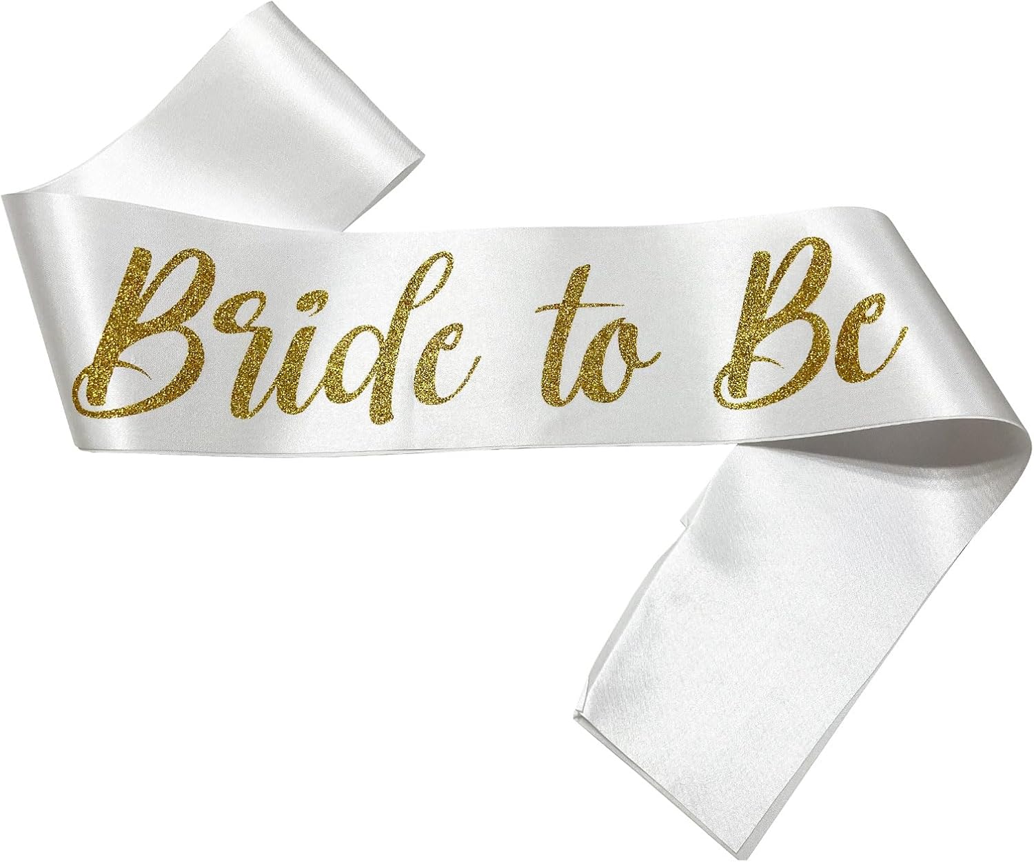 Bride to Be Sash White and Gold, Bride Sash Bachelorette Party Bridal Shower Sashes Bachelor Decorations Just Married Gift Engaged Decor Accessories,White Gold