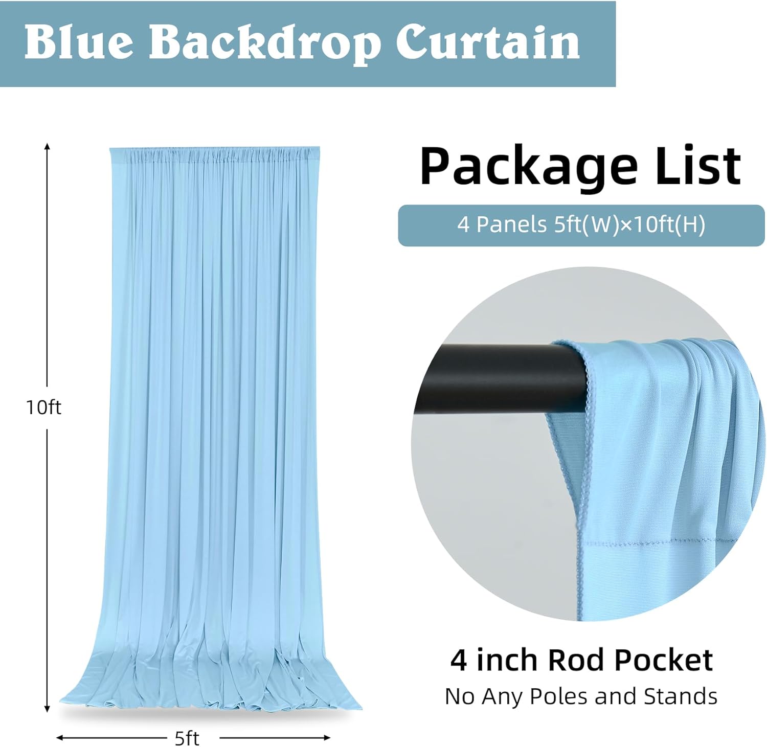 • ๐Ÿ‘ Blue Backdrop Curtains 20 x 10 - Each set includes 4 panels blue curtains, each measuring 5ft wide x 10ft long, totaling 20ft x 10ft blue backdrop. perfect for creating stunning dusty blue drapes at weddings, parties, and more. The effect of folding is better.