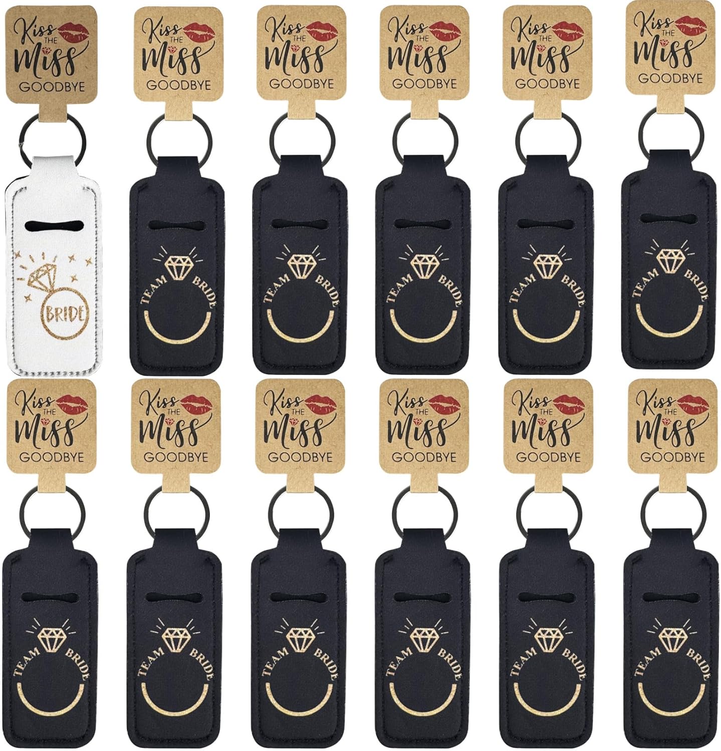 KIDZVEFUN Bridesmaid Proposal Gifts, 12Pcs Chapstick Holder for Bachelorette Party Favors Wedding Bridal Shower Cute Gifts for Women Lip Balm Holder (1 Bride+11Pcs Black)