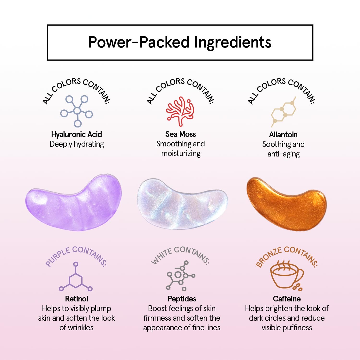 • Repair In Your Sleep - Our under eye masks for dark circles are powered by an advanced blend of sea moss, ceramide, and fatty acids that restore the delicate skin of your under eyes, so you can wake up fresh. Our gel eye mask are your new secret.