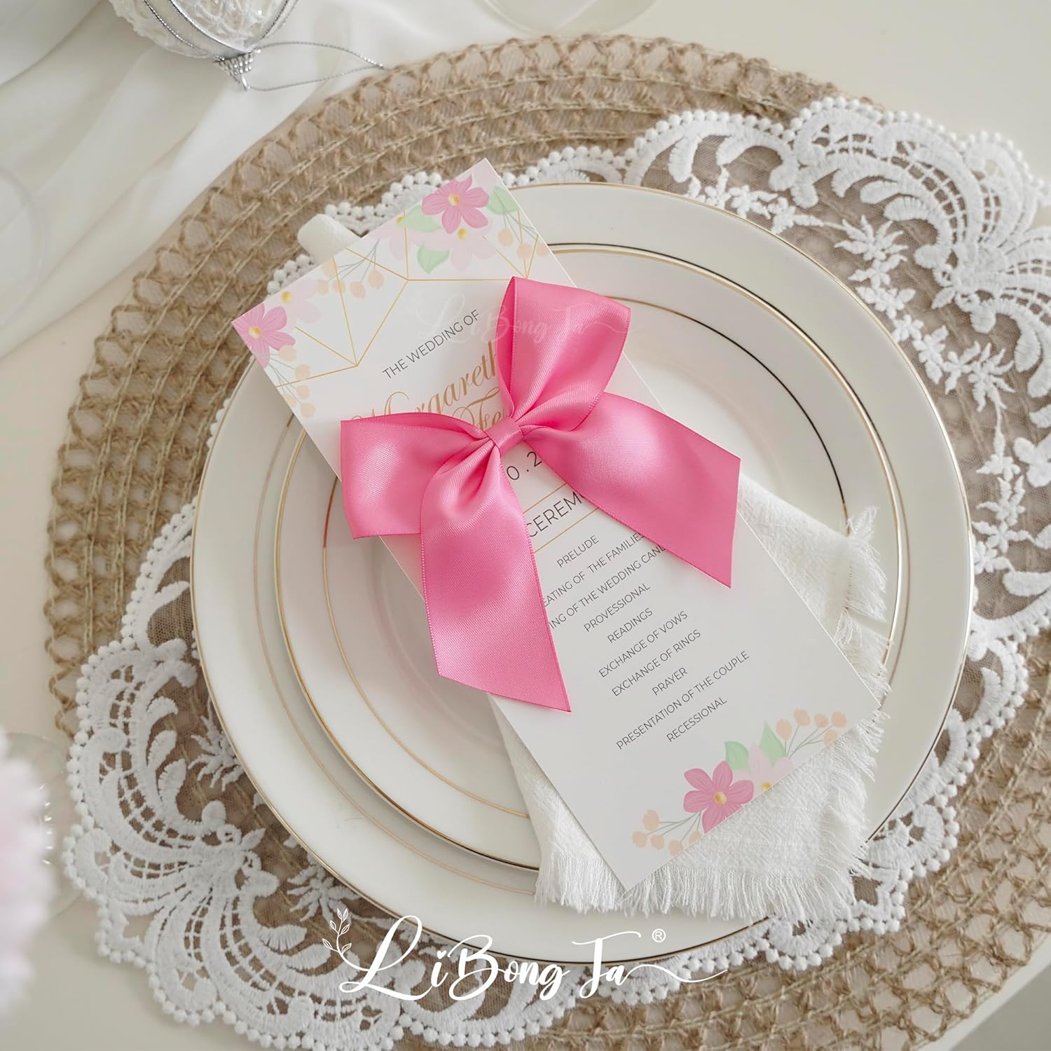 4.5" Satin Ribbon Hot Pink Bows for Gift Wrapping, Twist Tie Bows, Cute Bows for Crafts, Party Favors, Premade Bows Pre-Tied Decorative Bows for Flower Bouquets Candy Apple Bows-24 Counts