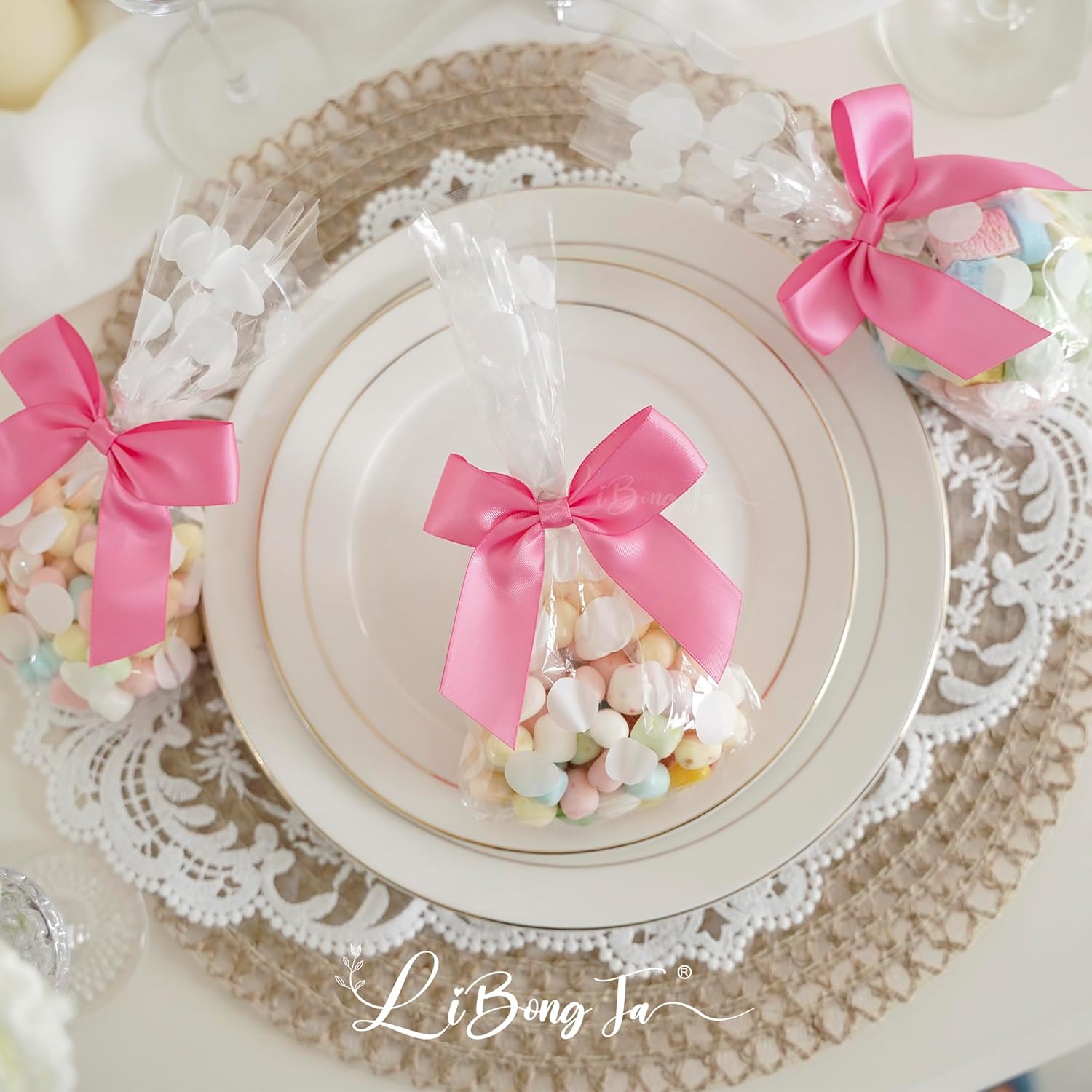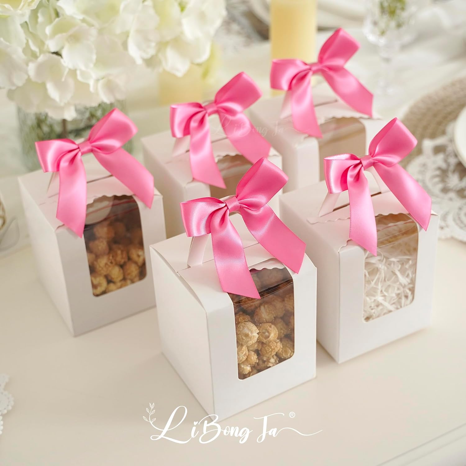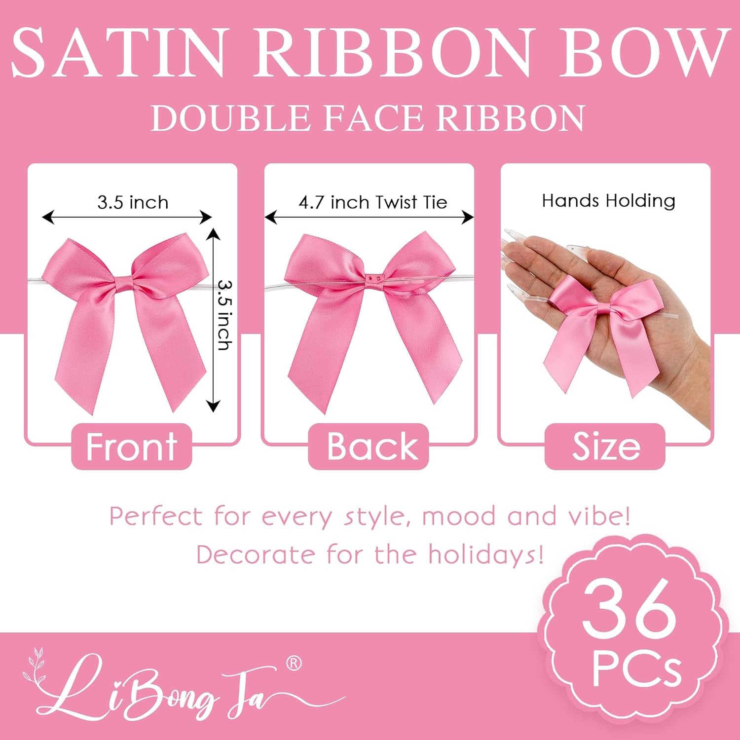 3.5" Hot Pink Bow Satin Pre-Tied Bows for Gift Wrapping, Small Bows for Crafts, Premade Bows, Candy Apple Bows, Twist Tie Bows for Cake Decorating, Party Favor, Wedding Decoration-36 Counts